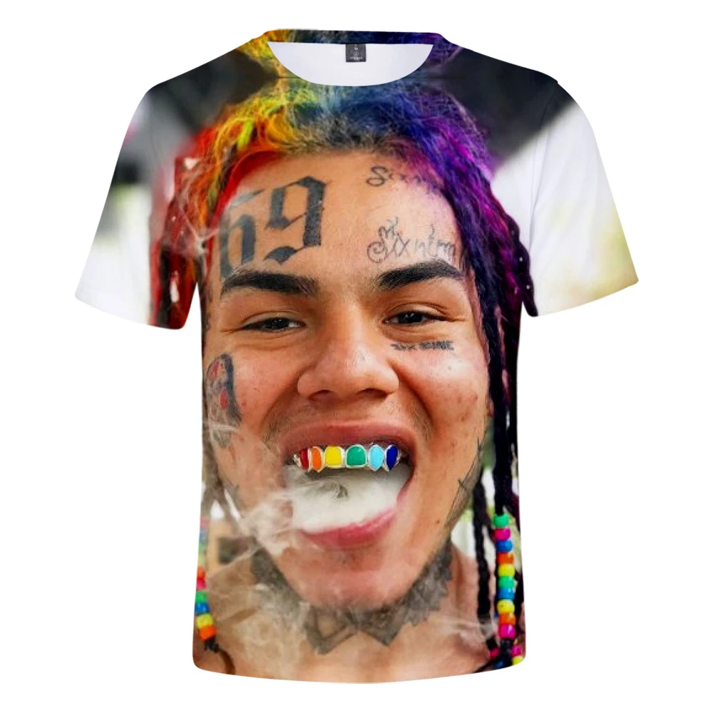 Футболка Rapper 69 6ix9ine Tekashi69 с 3D принтом, уличная одежда в...