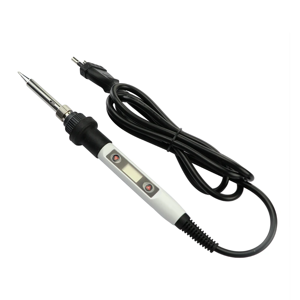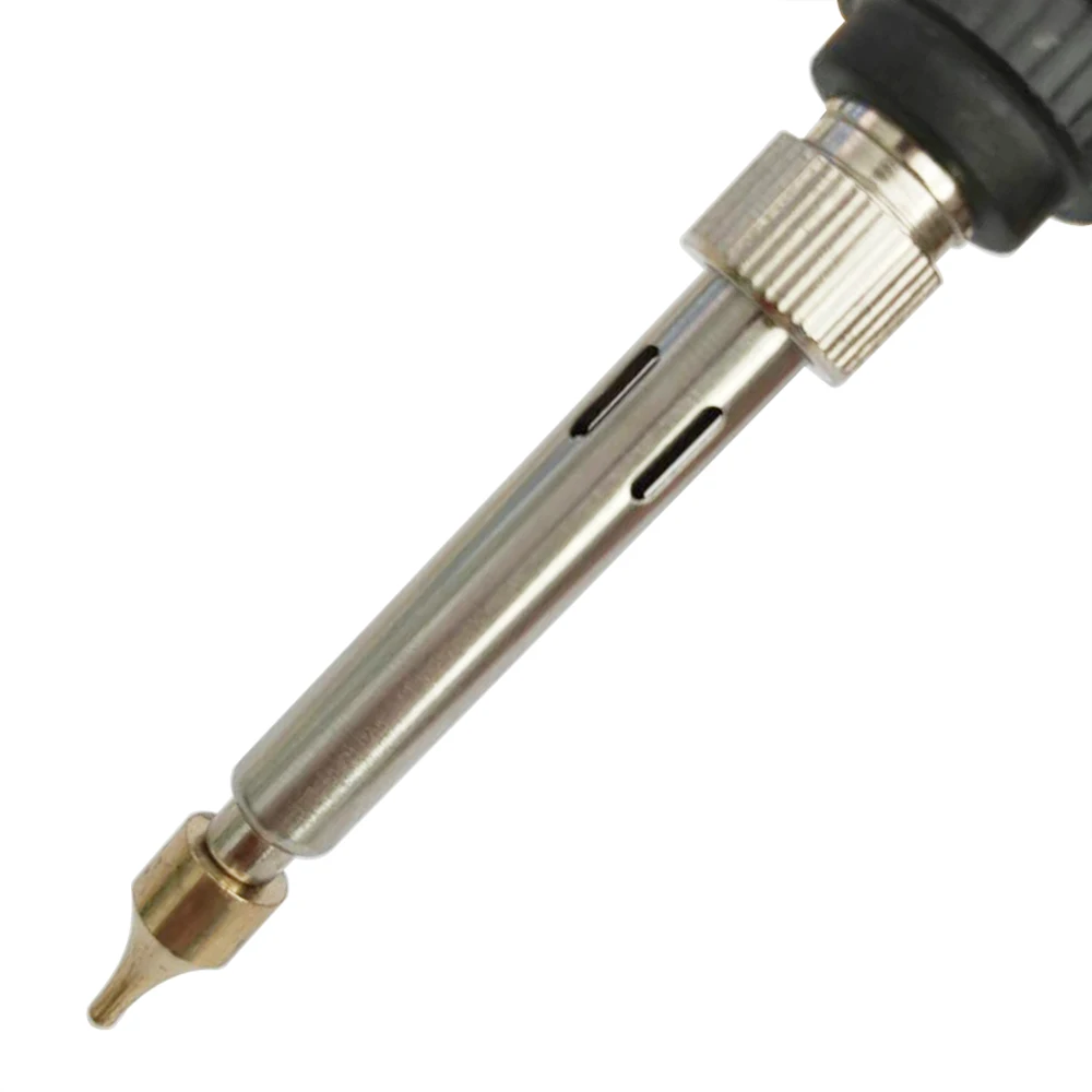 Он изготовлен из металлического наконечника и нержавеющей стали, обеспечивает качество продукции и свойства стабильности и надежности. Паяльник с регулируемой температурой s: 200-450 градусов по Цельсию, есть специальная схема термостата для контроля температуры, и вы можете регулировать температуру в соответствии с вашими потребностями колесом ручки на электронном паяльникеЭтот паяльник может быть применен при сварке паяльником с наконечниками и резьбой, пирографией, выбиванием дерева, сжиганием с резьбовыми наконечниками.