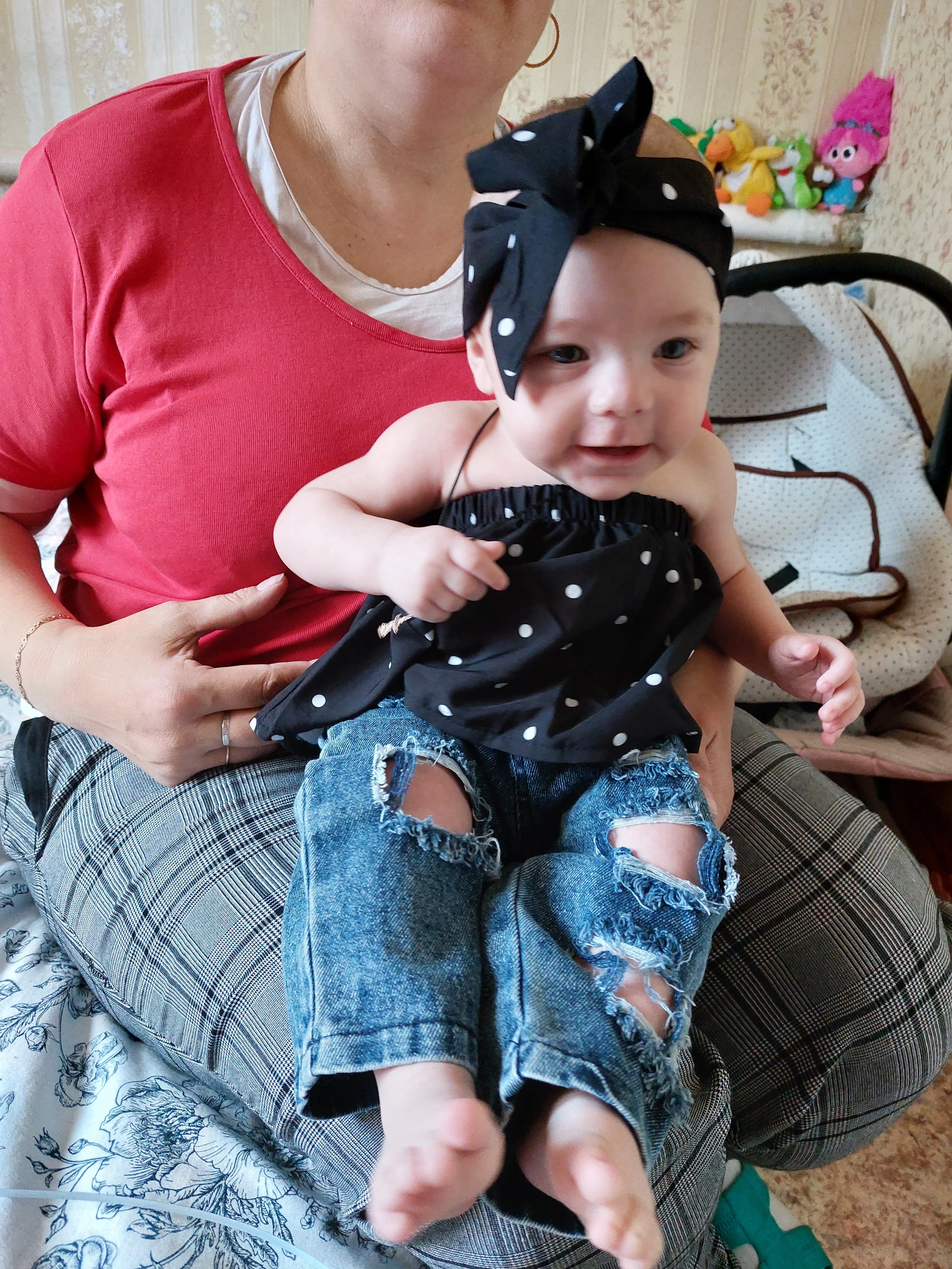 Посылка включает в себя: 1 Топ + джинсовые штаны + повязка на голову