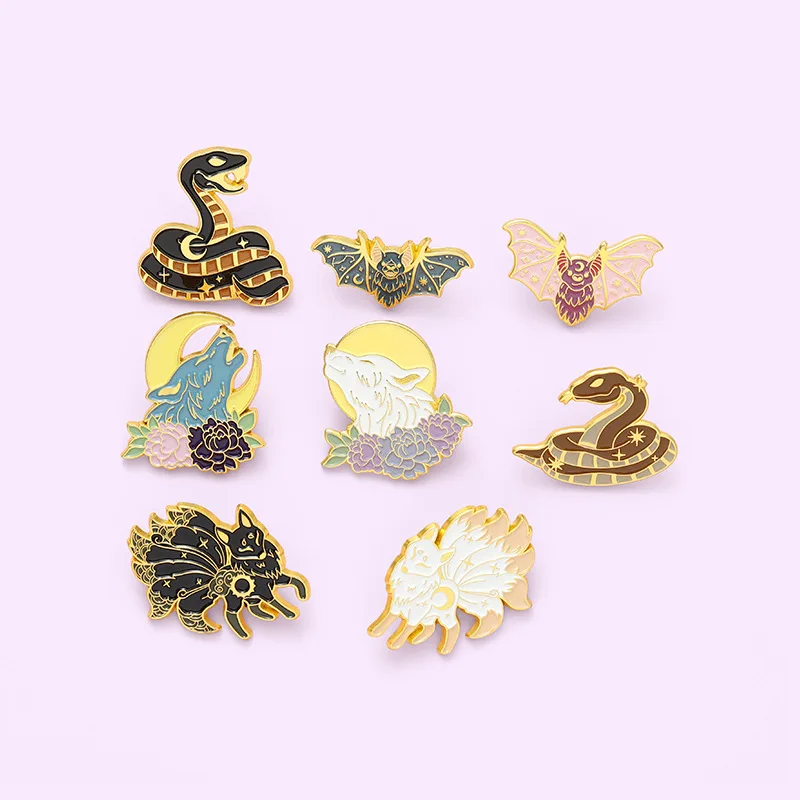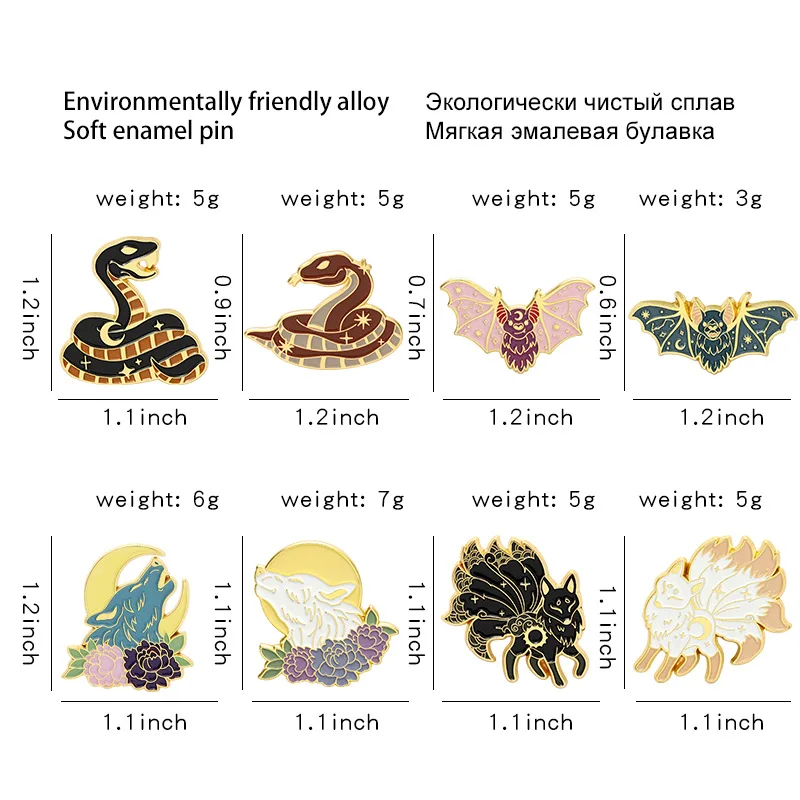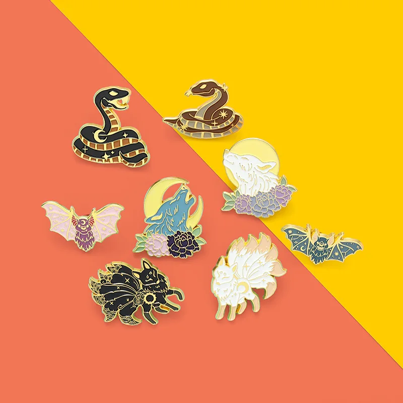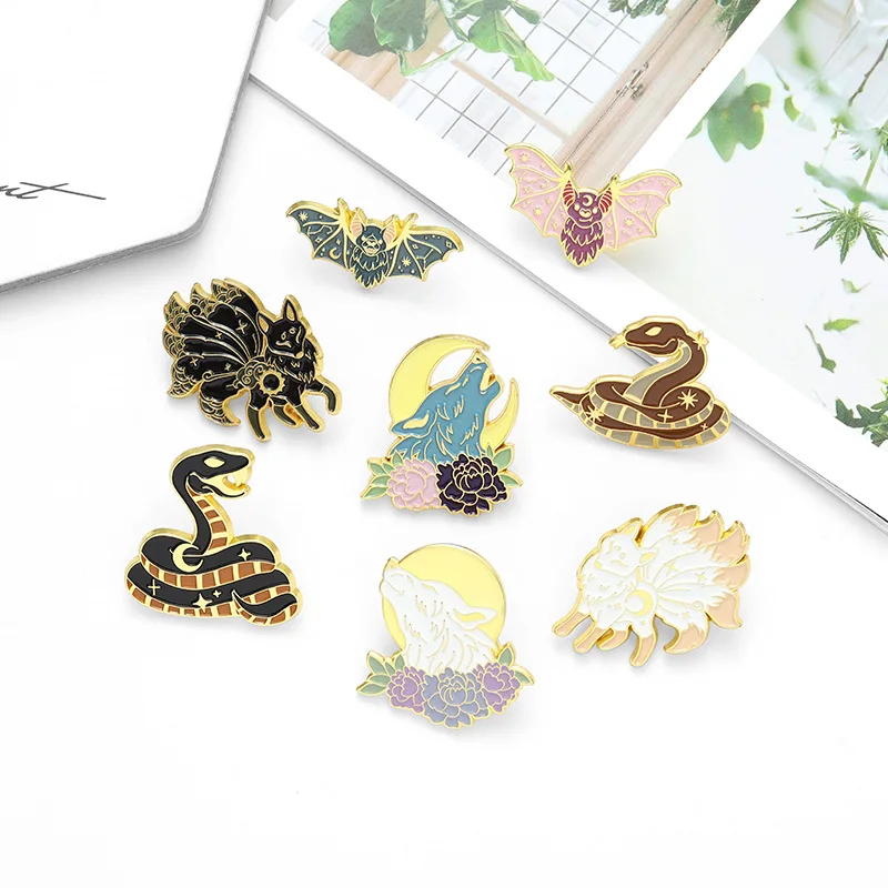 Креативная модная металлическая эмалированная брошь в виде Луны, солнца, летучей мыши, волка, лисы, змеи, симпатичная пара лацкан рюкзак, ювелирные изделия в подарок
