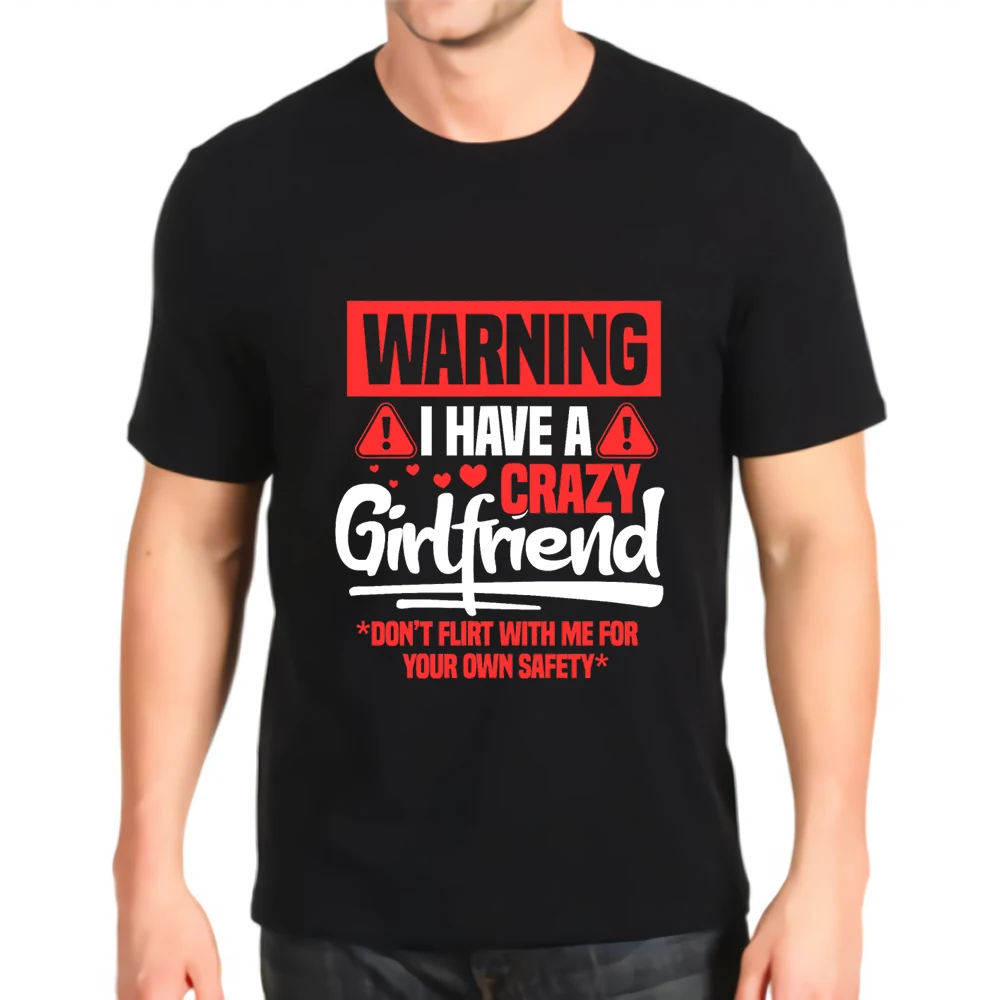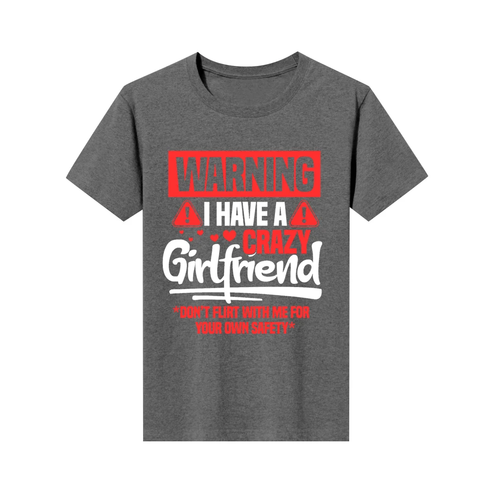 Новая модная футболка с принтом предупреждающая надпись У меня безумная подруга Забавные футболки для парней мужские свободные индивидуальные по индивидуальному заказу