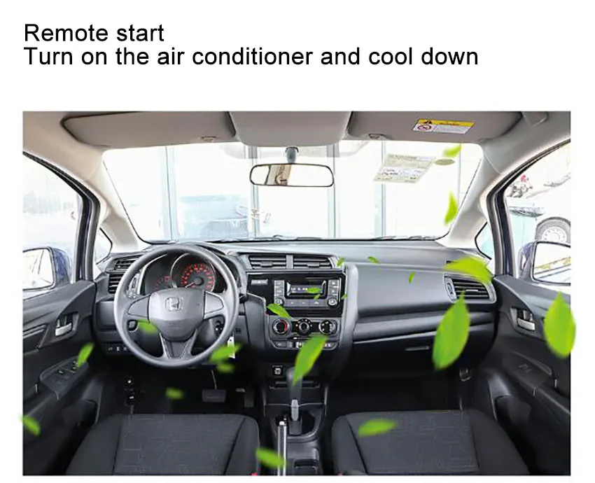 Дистанционный запуск/остановка двигателя Дистанционный запуск двигателя: в то время как автомобиль находится в заблокированном состоянии, нажмите кнопку блокировки на оригинальном пульте дистанционного управления 3 раза непрерывно, поворотные сигнальные огни будут мигать 3 раза, автомобиль будет чист один раз, и двигатель начнет работать, Двигатель будет продолжать работать в течение 15 минут после запуска двигателя, когда пользователь откроет любую дверь после разблокировки дверей с помощью пульта дистанционного управления или дверной ручки, двигатель автоматически остановится, нажмите кнопку пуска, чтобы запустить двигатель и управлять автомобилем. Дистанционная остановка двигателя: в то время как двигатель работает после удаленного запуска двигателя, нажмите кнопку блокировки один оригинальный пульт дистанционного управления 3 раза непрерывно двигатель остановится. Кондиционер: если вы не выключили кондиционер в прошлый раз, просто выключите автомобиль, когда вы снова запустите двигатель автомобиля, он автоматически включит кондиционер. Поможет Вам охладиться летом