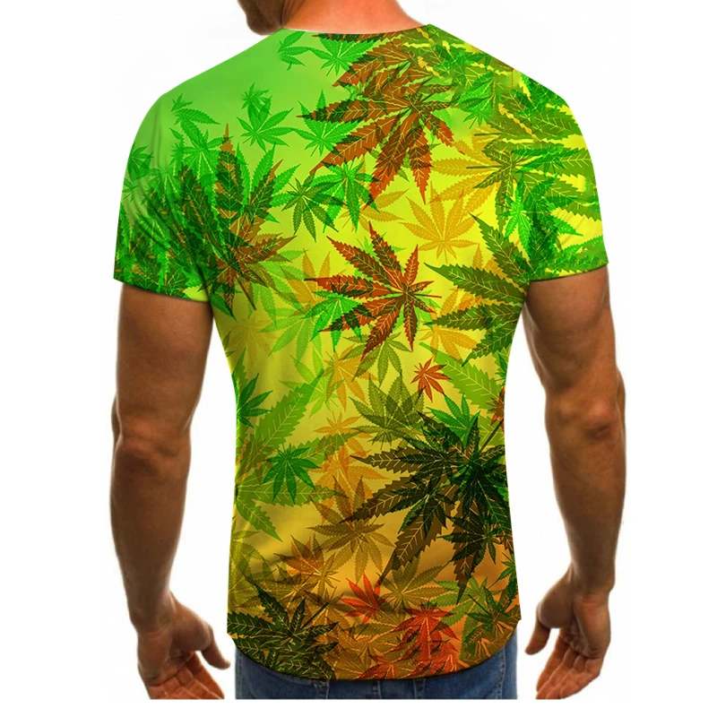 Мужская и женская футболка с изображением кленовых листьев и птиц, простая футболка большого размера с круглым вырезом и короткими рукавами, 3d-принт