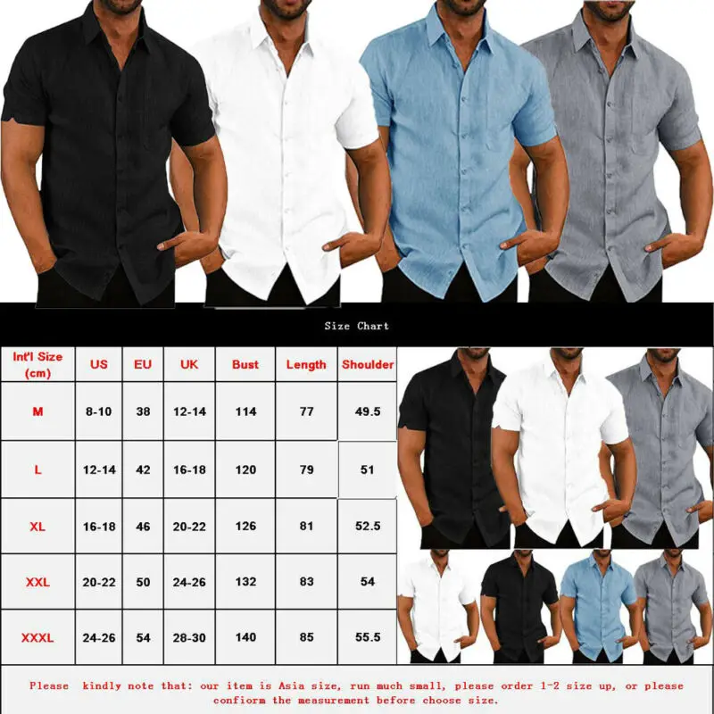 Мужская льняная блузка, с коротким рукавом, мешковатые, на пуговица...