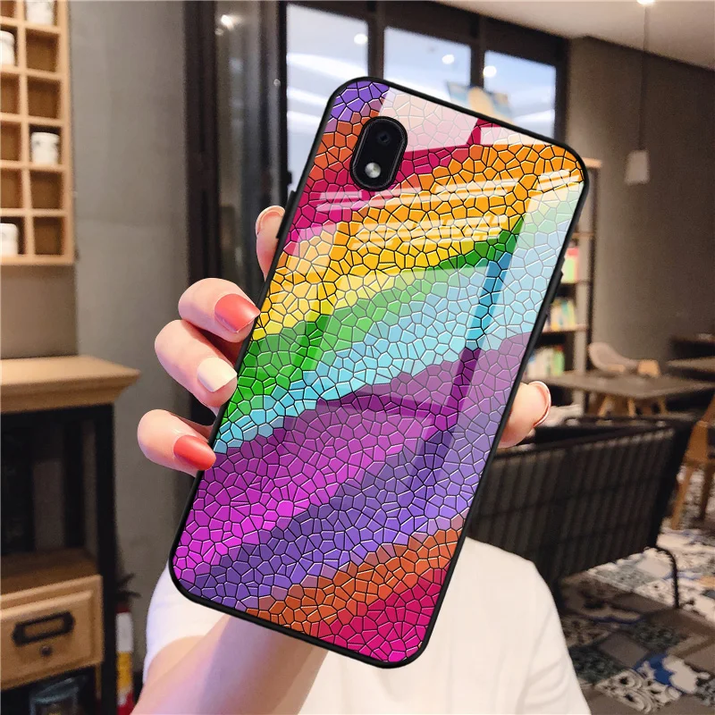 Tempered Glass Back CaseCartoon Pattern For samsung Global Tempered Glass Case