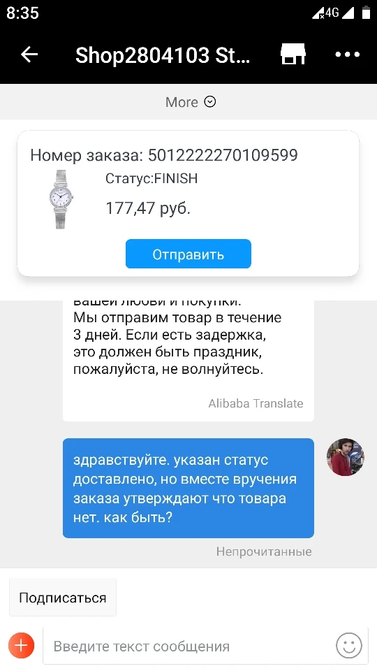 Я не получил свои часы! Я не сообщал, что получу эти часы! Магазин 2804103 магазин не является надежным!