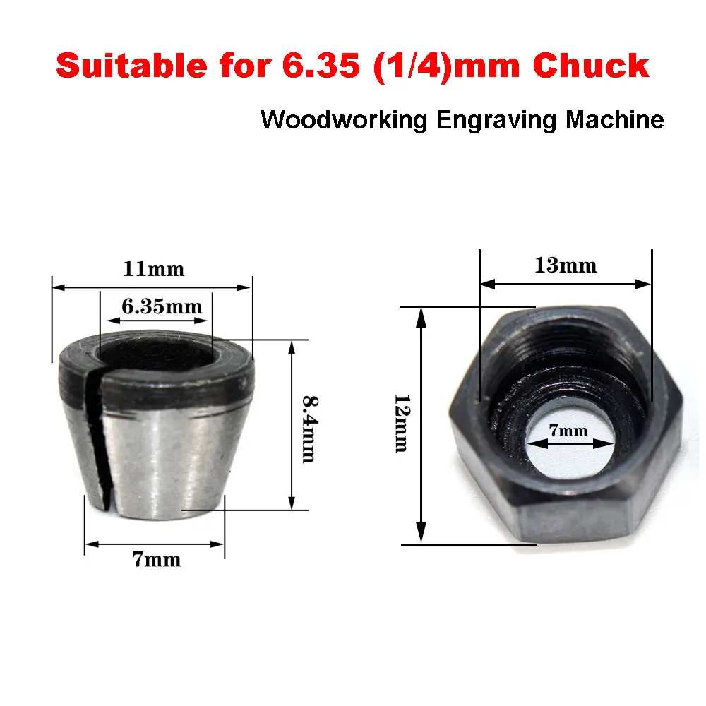 Фрезерный Цанга с хвостовиком 14 дюйма, 6 мм, 6,35 мм, 8 мм для резака, патрон и Гайка для электрического деревообрабатывающего триммера, деревообрабатывающий фрезерный станок, гравировальный станок