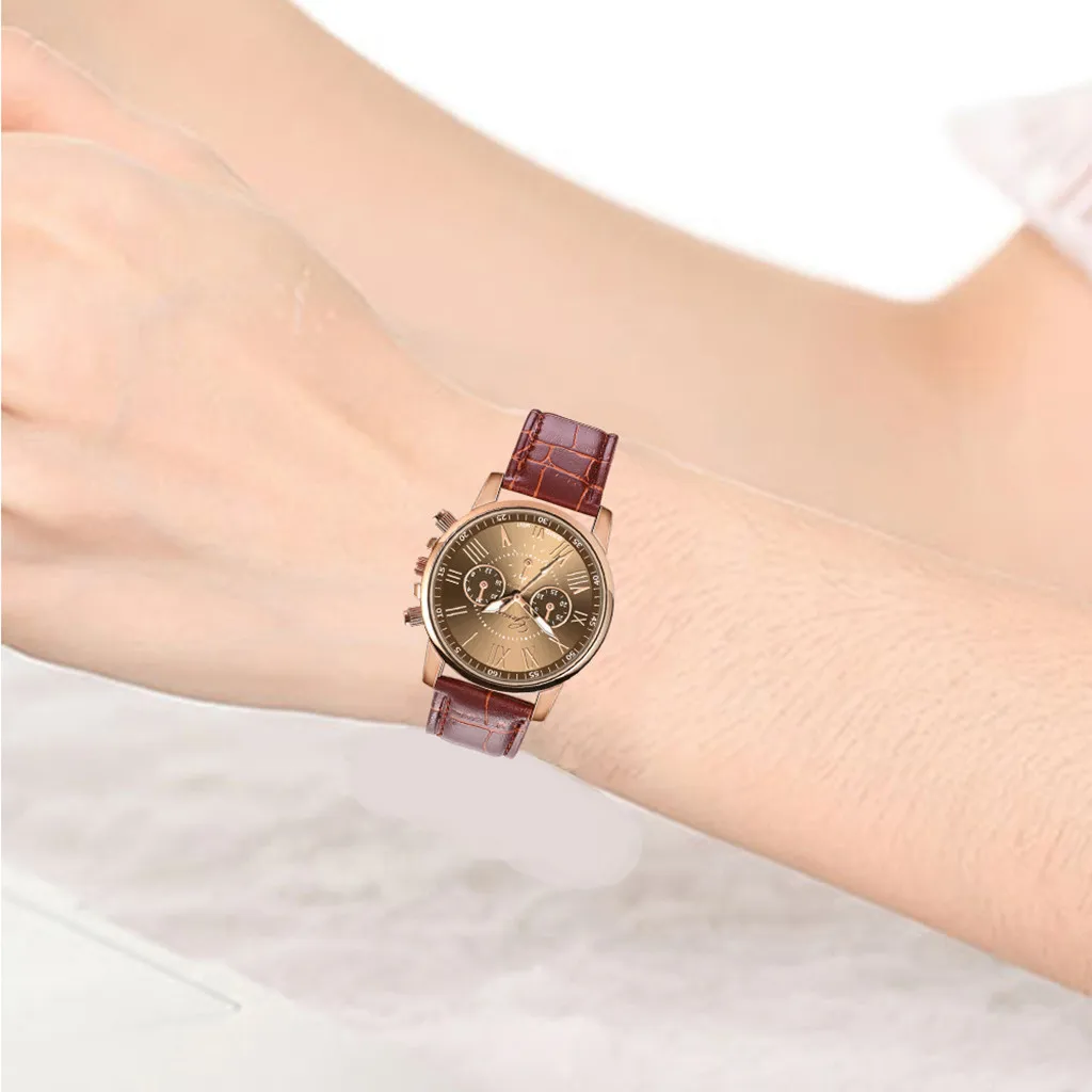 Новые модные женские Кварцевые аналоговые наручные часы с кожаным ремешком