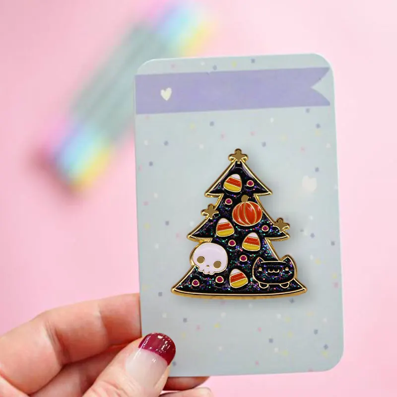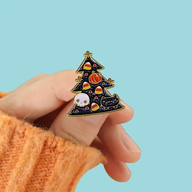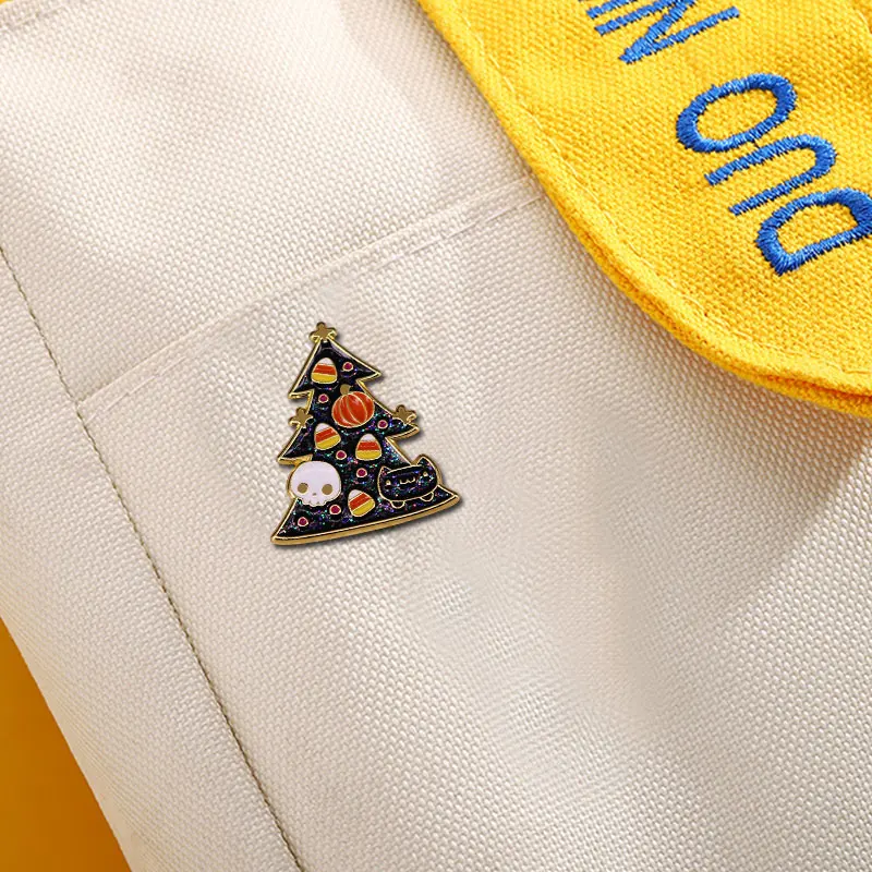 2021 шпильки-Хэллоуин Тыква конфеты кукуруза Фудж Черный кот Череп Призрак Рождественская елка нагрудный знак брошь джинсы рубашки скрапбук аксессуары