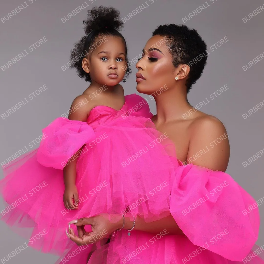 Горячее розовое Тюлевое мини-платье для матери и я с открытыми плеч...