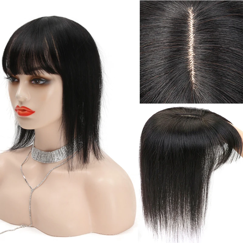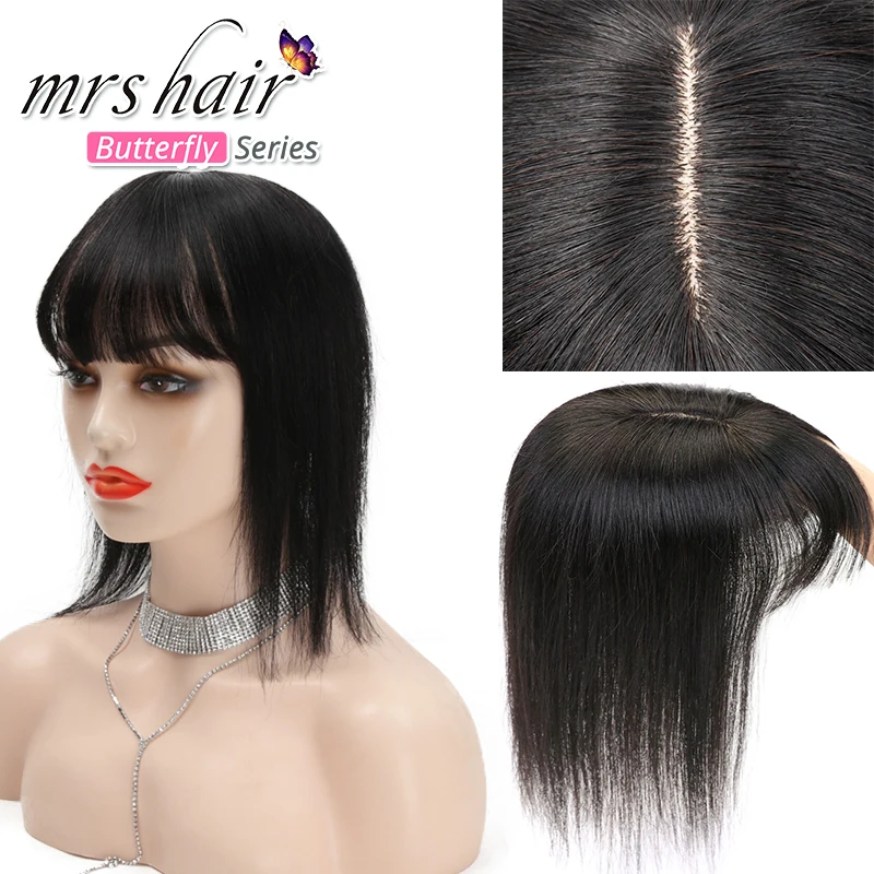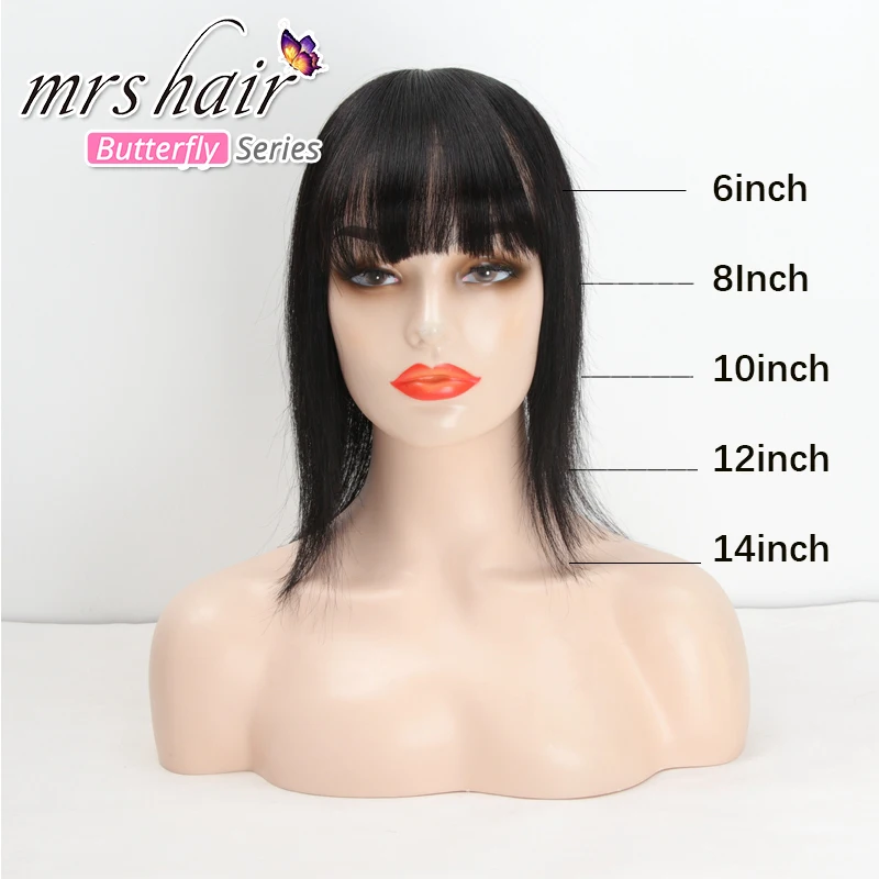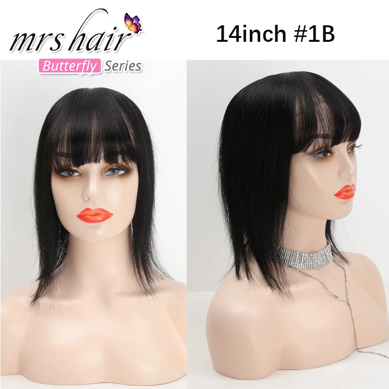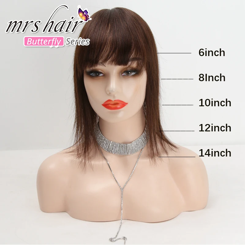 Женский парик для волос MRS HAIR, натуральные волосы на заколках для наращивания, 13x13 штук, #2, шоколадно-коричневый, с челкой