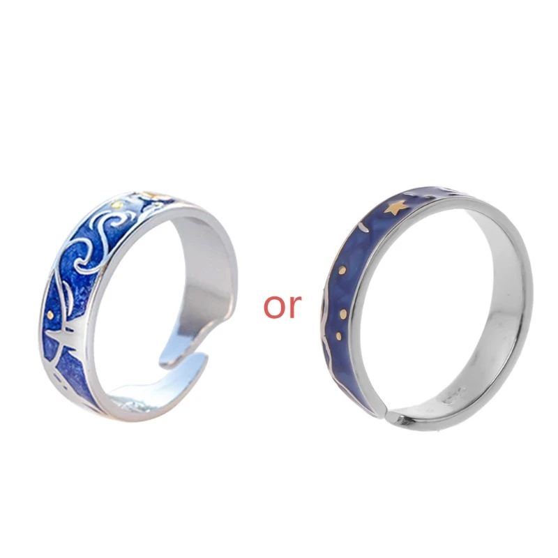 S925 Van Gogh звездное небо открытые влюбленные кольца Band романти...