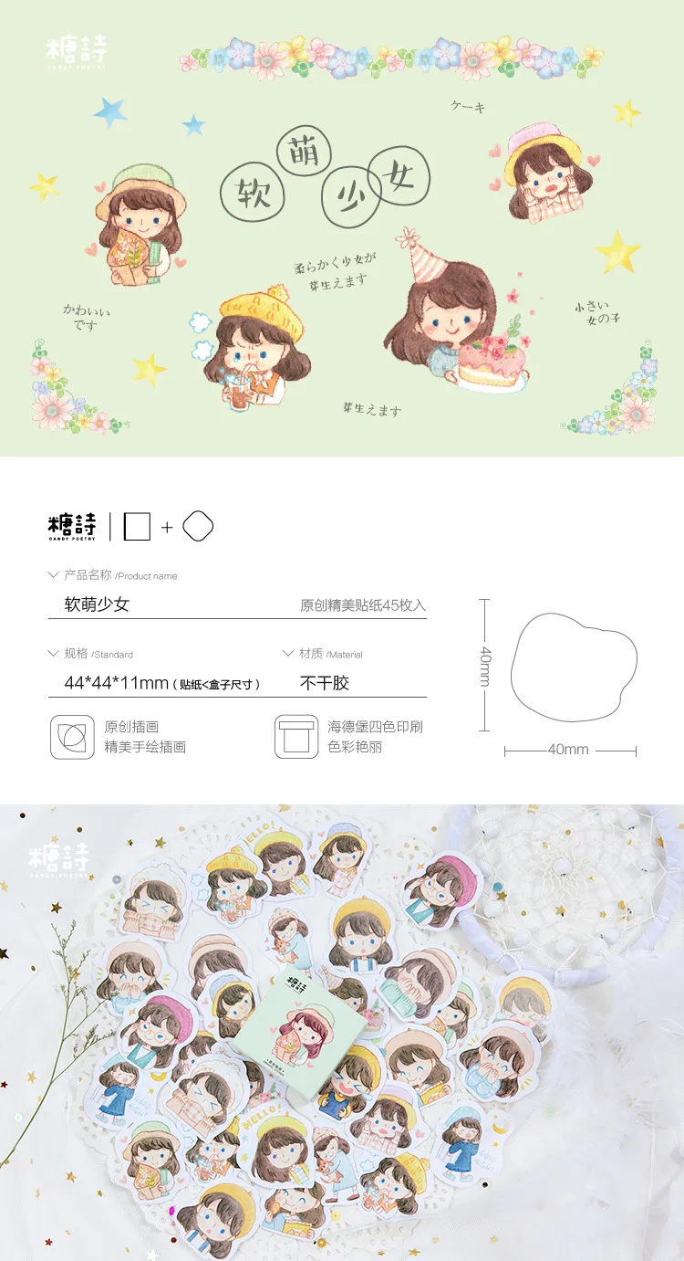 Милые Мультяшные наклейки 45 шт.коркоркор. для маленькой девочки, наклейки для дневника, журнала, канцелярские принадлежности, декоративные наклейки для скрапбукинга сделай сам