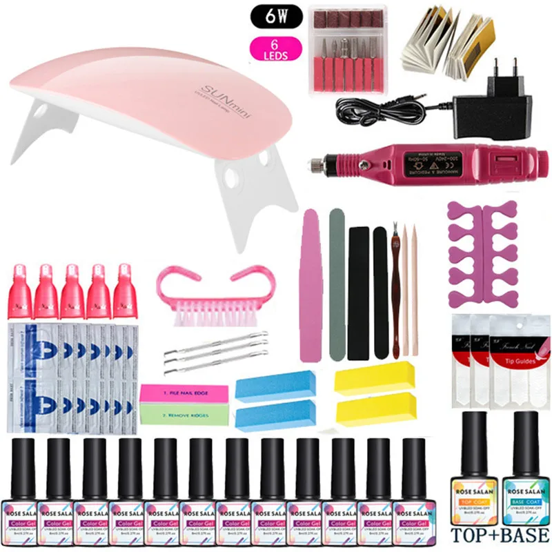 80 Вт УФ лампа для ногтей, набор для маникюра Kit Гель-лак для ногтей, Лаки комплект Фрезер для ногтей, сверлильный станок комплект пилочка для ногтей инструмент набор для наращивания ногтей