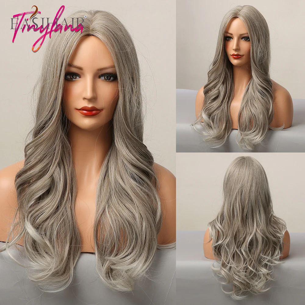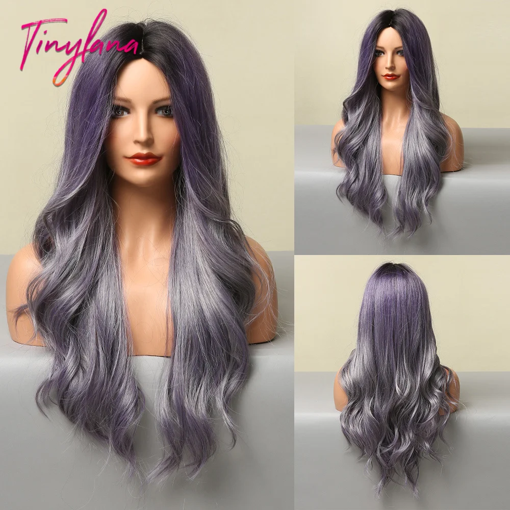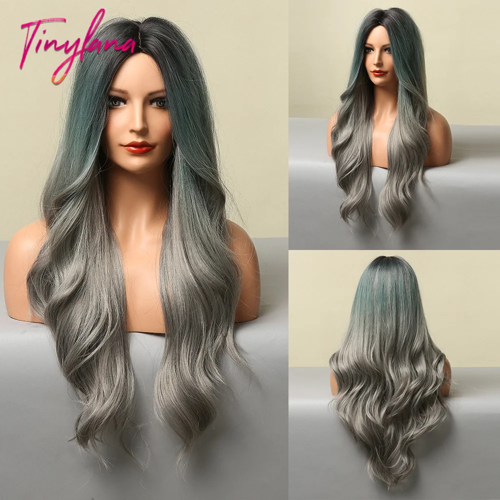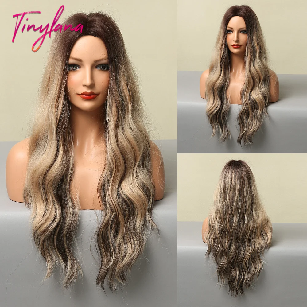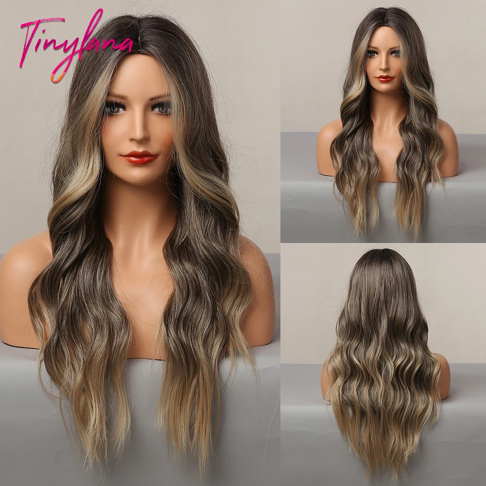 Маленькие длинные волнистые парики LANA, средняя часть, цвет Омбре, коричневый, блонд, синтетические парики для черных женщин, косплей, вечерние, повседневные, термостойкие