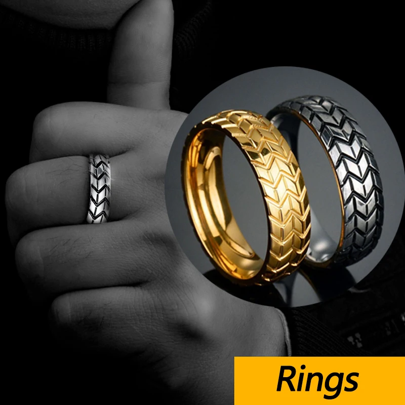 Кольца мужские из нержавеющей стали, классные мотоциклетные Колечки в стиле хип-хоп, панк, байкерское обручальное кольцо с геометрической полоской, цвет золото и серебро