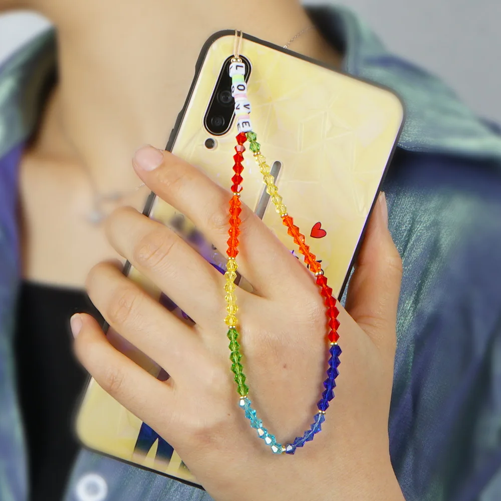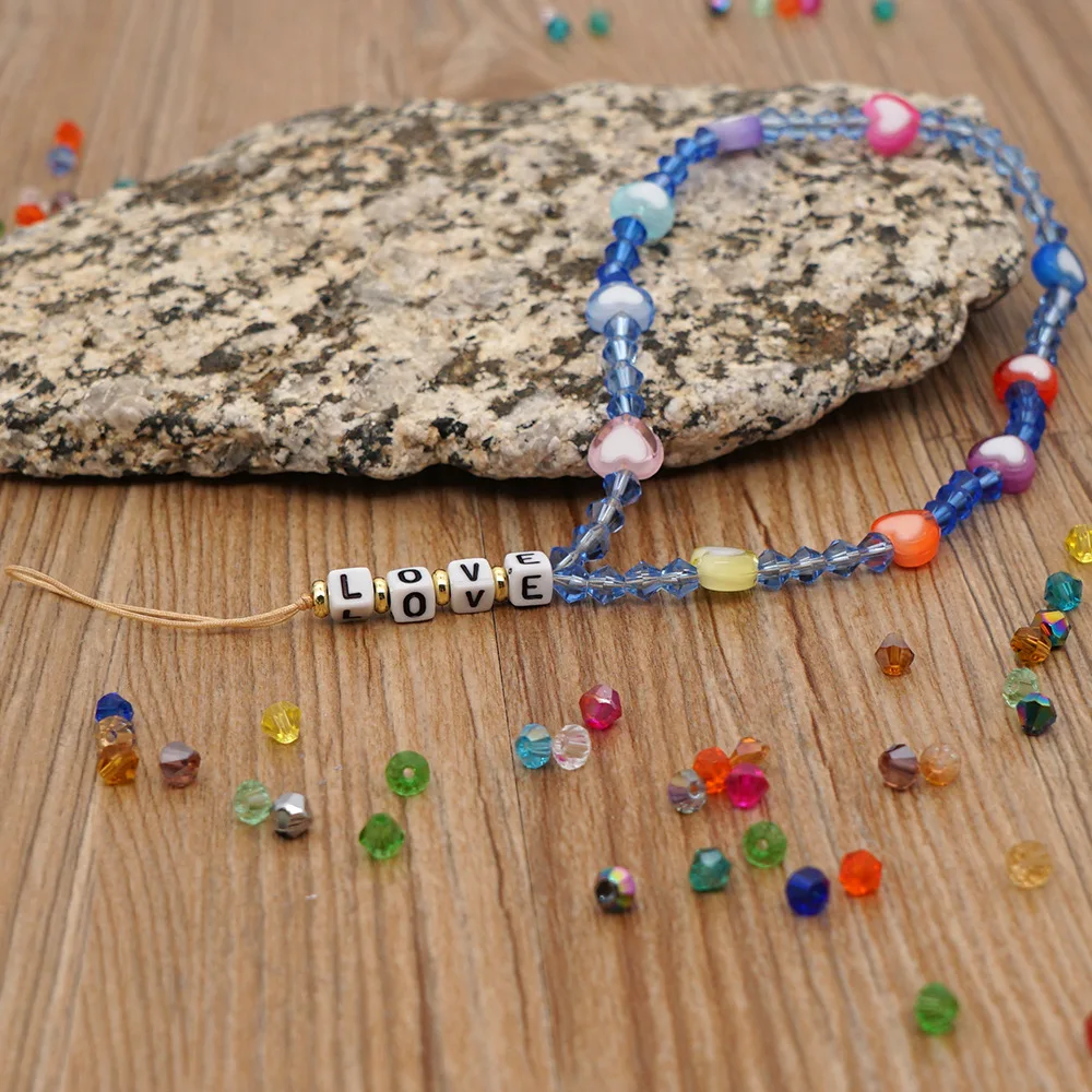 Яркий ремешок для мобильного телефона с бусинами и надписью на ремешке