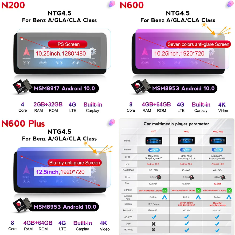 Название МоделиFor Mercedes Benz A Class W176 / GLA X156 / CLA C117 2013 - 2018