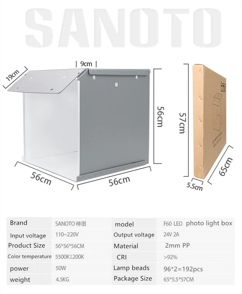 Софтбокс SANOTO складной, Лайтбокс для фотостудии, 2 светодиода, 56 см