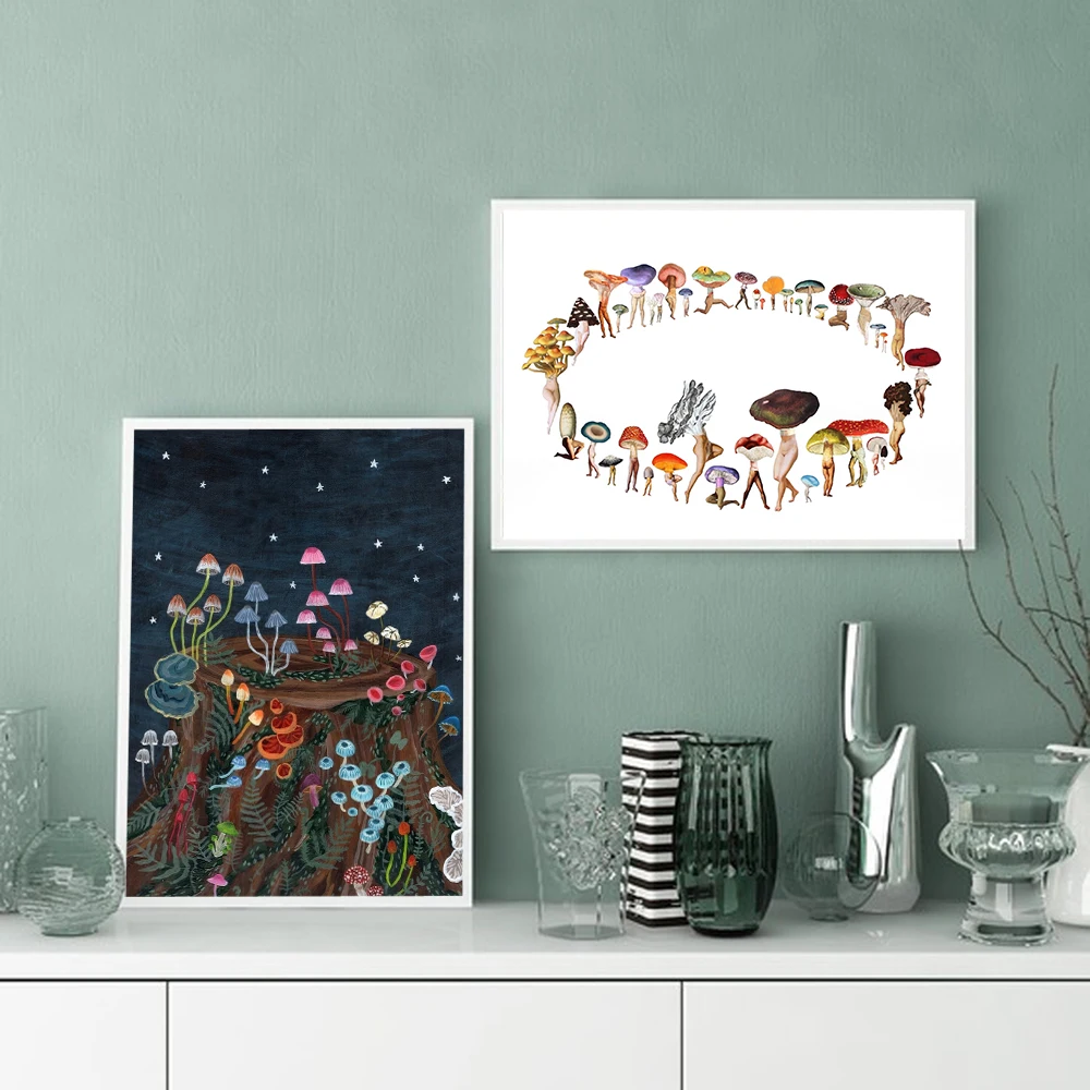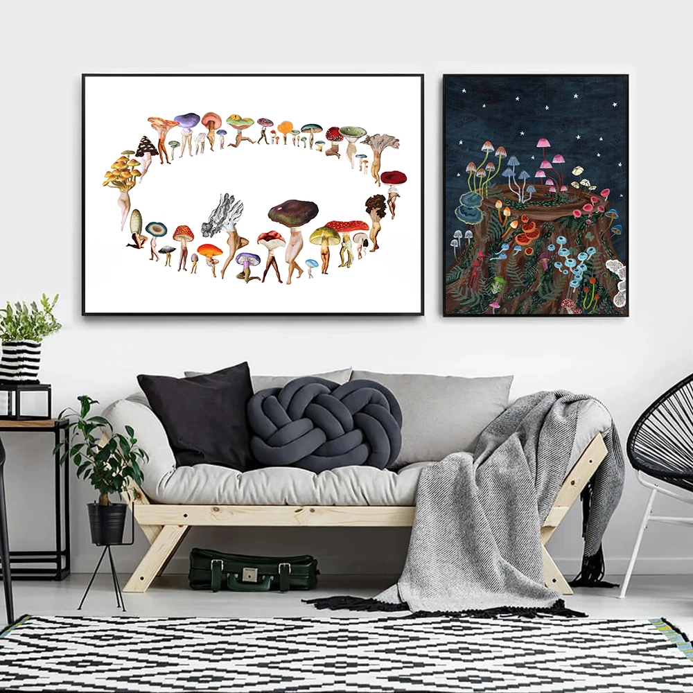 Плакаты с изображением грибов и фейерверков, постеры с изображением кольца фея, Абстрактные Художественные плакаты, настенная живопись, Картина на холсте, декор для домашней комнаты