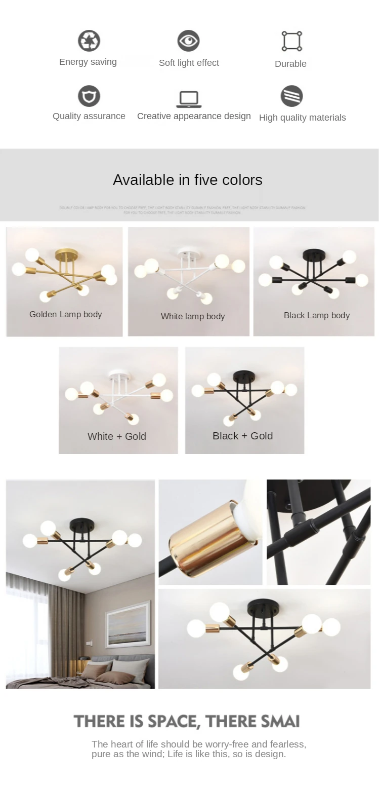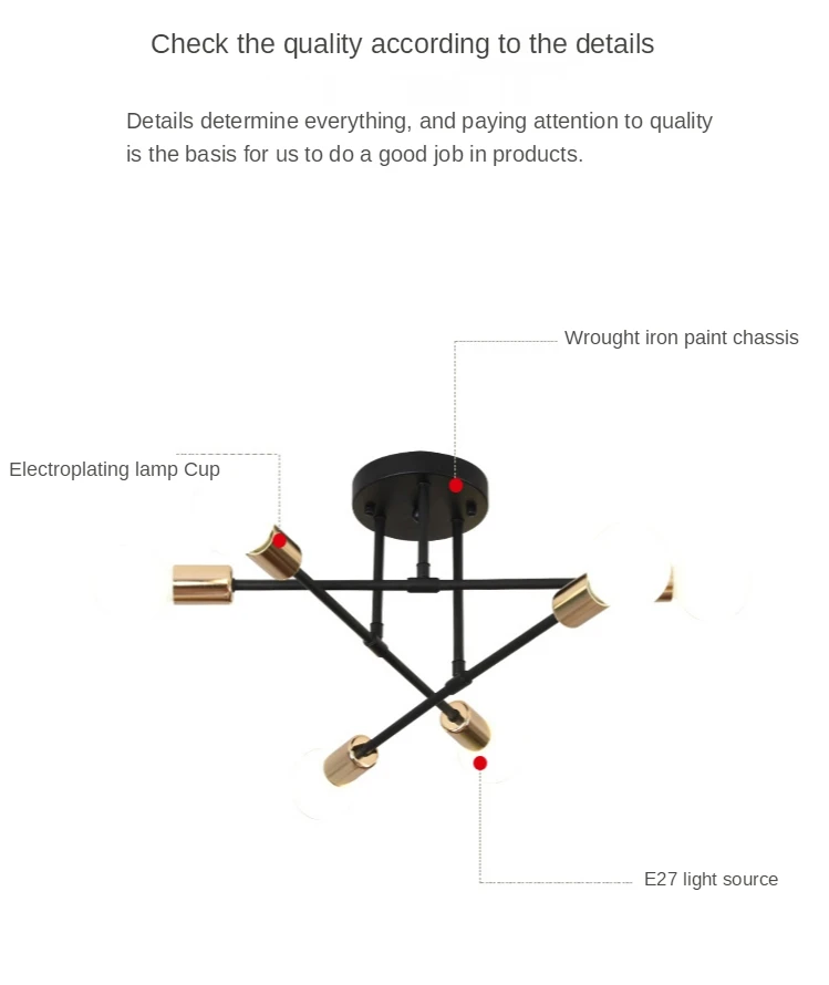 Светильник источник: E27 * 6 (лампочки не входят в комплект)Материал: железо + стеклоЦвет: Золотой/черный/белыйНапряжение: 90-260 В