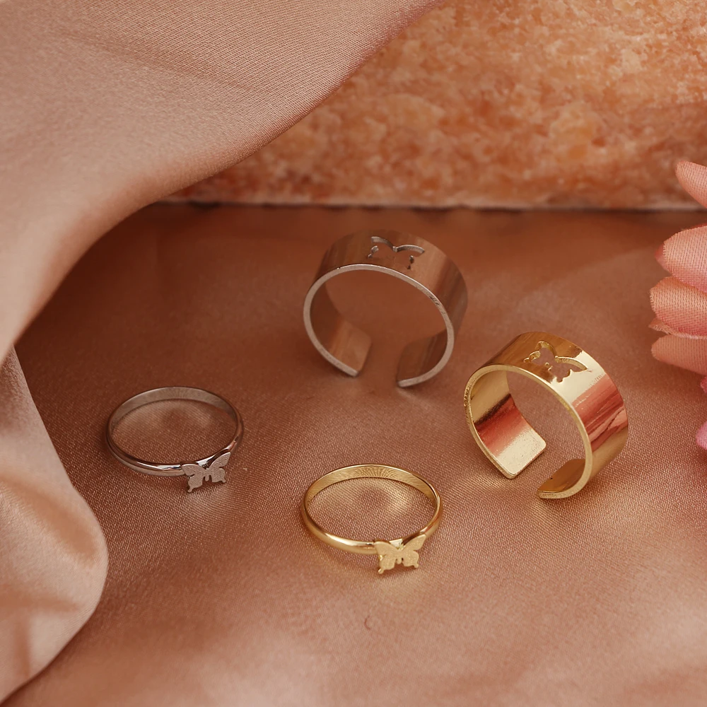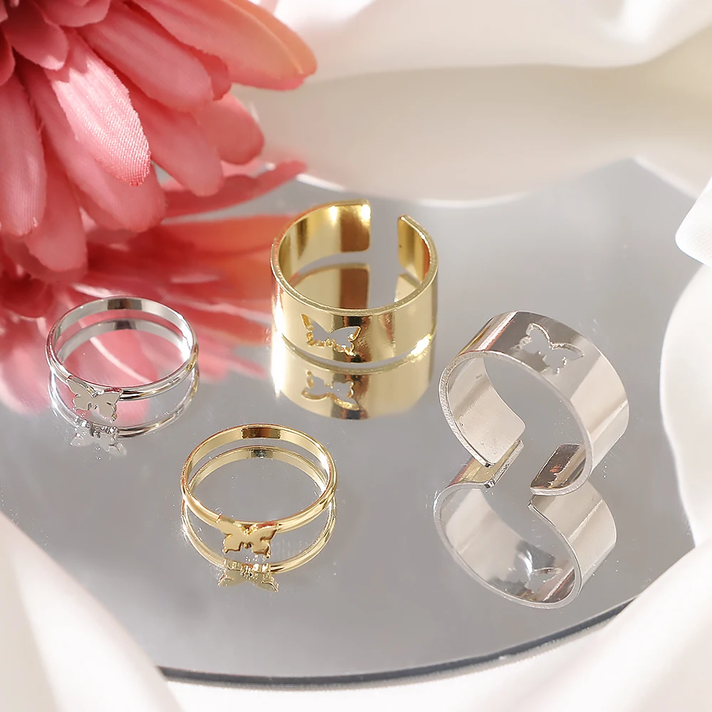 FNIO 2021 модные золотые бабочки Кольца для мужчин и женщин парные кольца для влюбленных набор дружбы обручальное открытые кольца ювелирные изделия