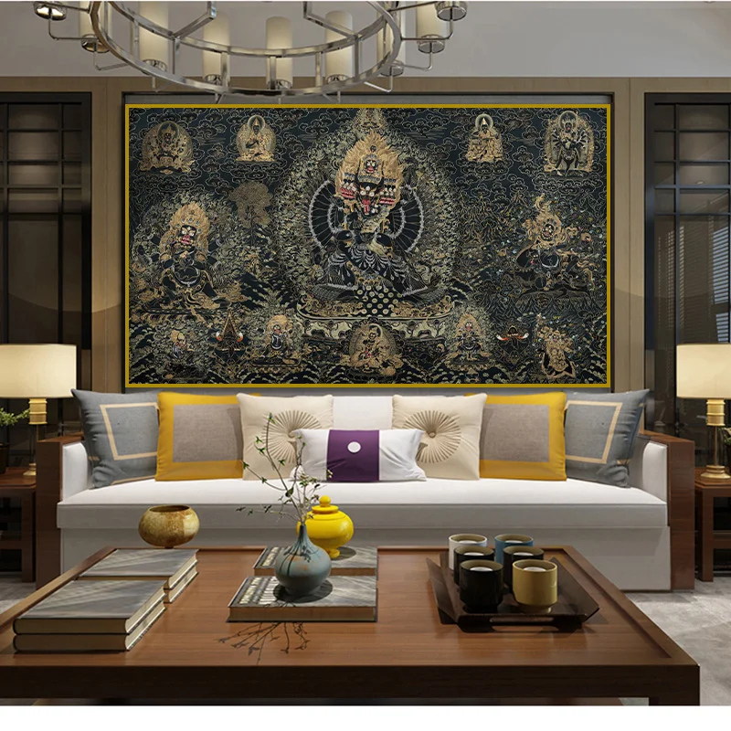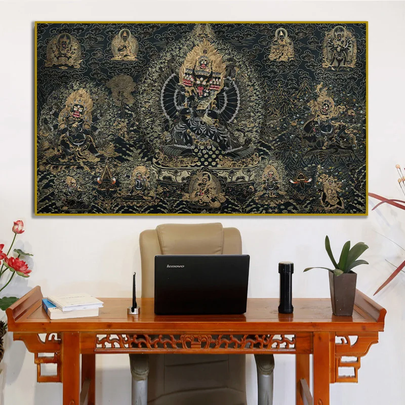 Вышивка тибетский Будда танка, индийский китайский религиозный стиль, Картина на холсте, постер, Настенная картина для гостиной, домашний декор