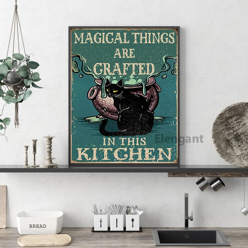 Черные костюмы ведьм для Кошка Луна Винтаж плакат художественный принт волшебные вещи прививаются в этом Кухня холст картины настенные картины для декора