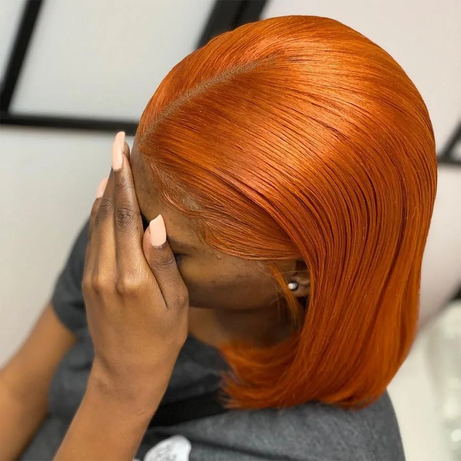 Глубокая свободная часть короткий вырез Боб шелковистый прямой имбирный оранжевый кружевной передний парик для женщин с Babyhair натуральный шиньон синтетический