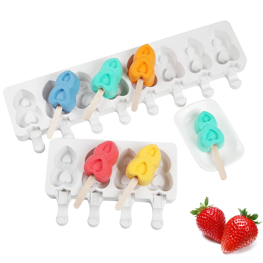 Силиконовая форма для мороженого, многоразовые Формочки сделай сам с 8 полостями, форма 2 любовь, для приготовления домашнего эскимо, десертов, поп-мороженого, палочки