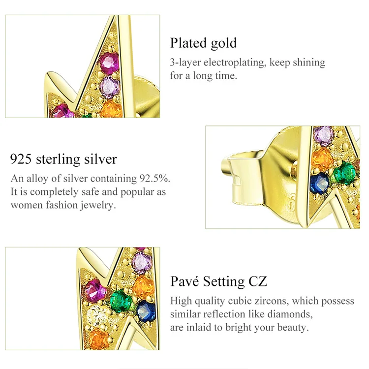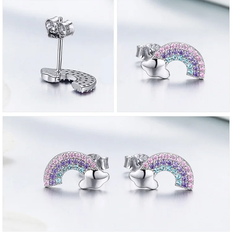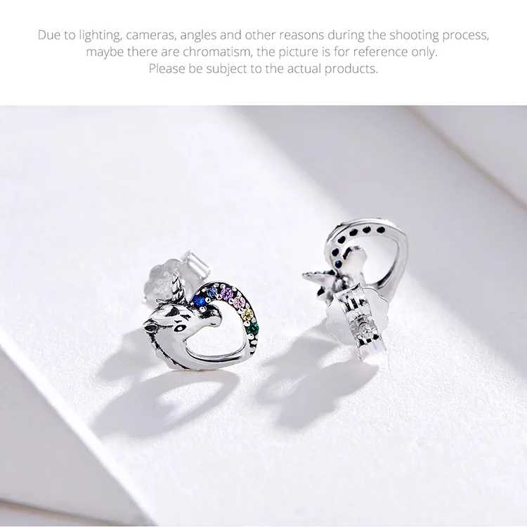 Женские серьги-гвоздики из серебра 925 пробы с разноцветным сердцем