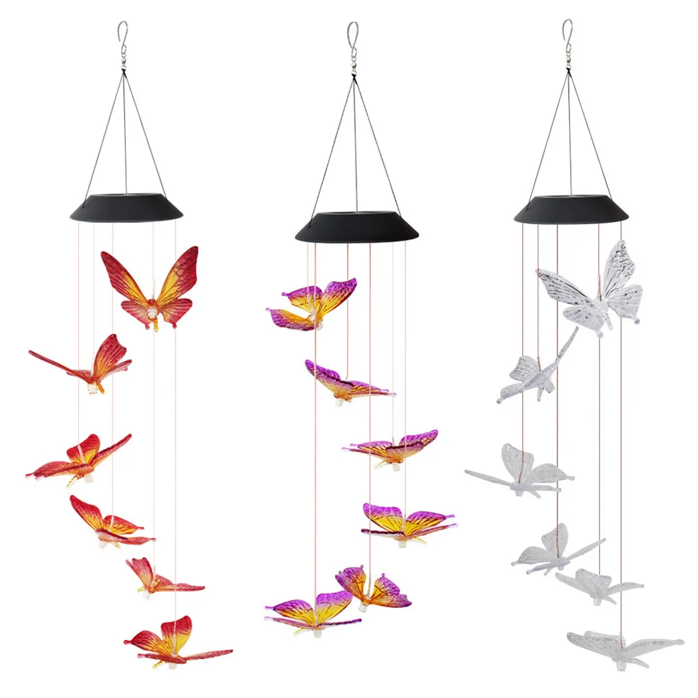 Светодиодные ветряные колокольчики на солнечной батарее, декоративная Водонепроницаемая уличная Подвесная лампа в виде бабочки, меняющая цвет, для дома и сада