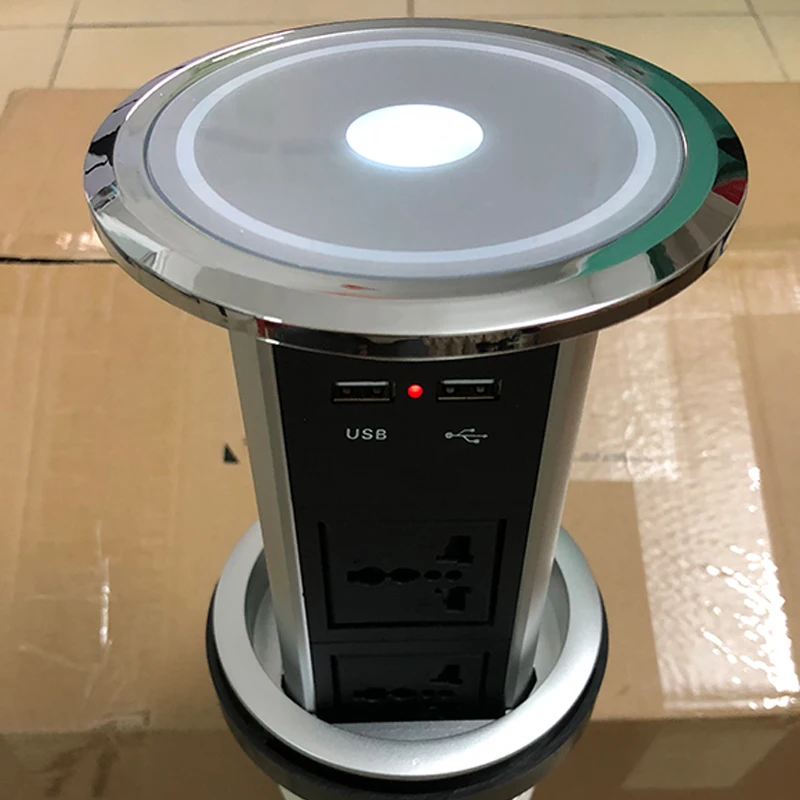 Встроенные универсальные USB-штекеры, серебристые настольные скрытые выдвижные розетки питания с крышкой, настольные розетки для электрических Попов, CE Rohs