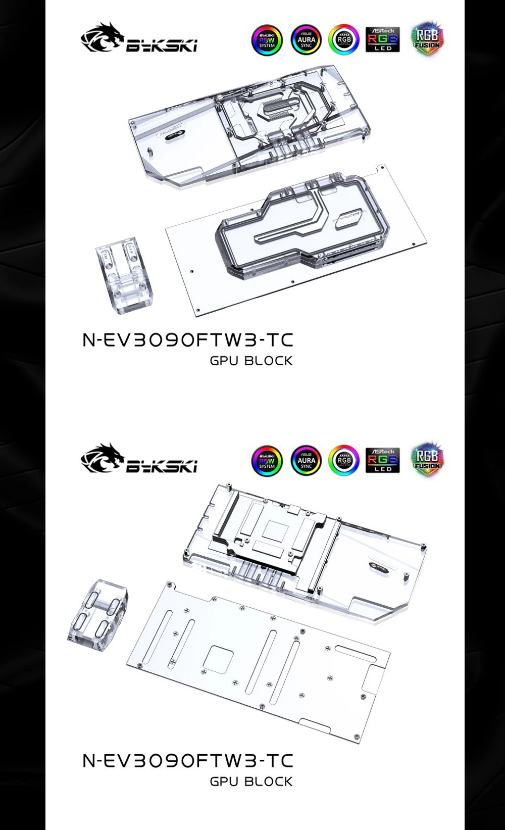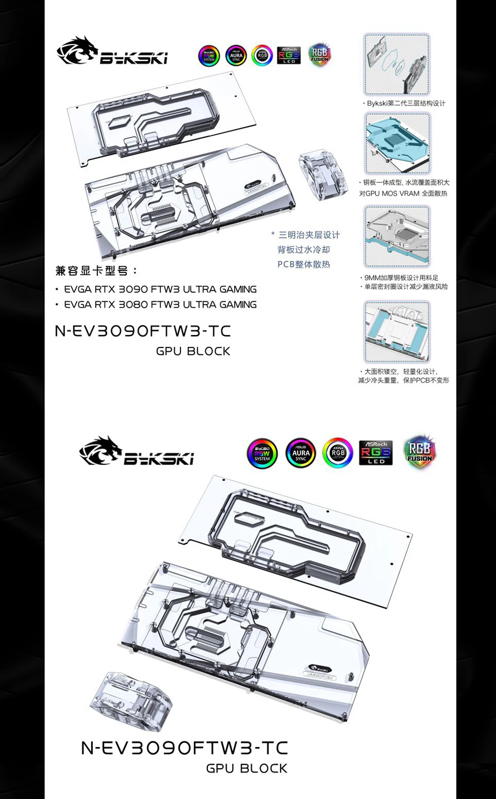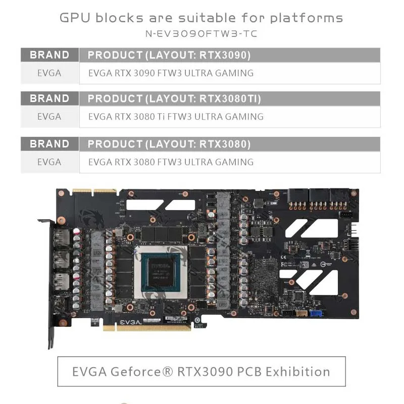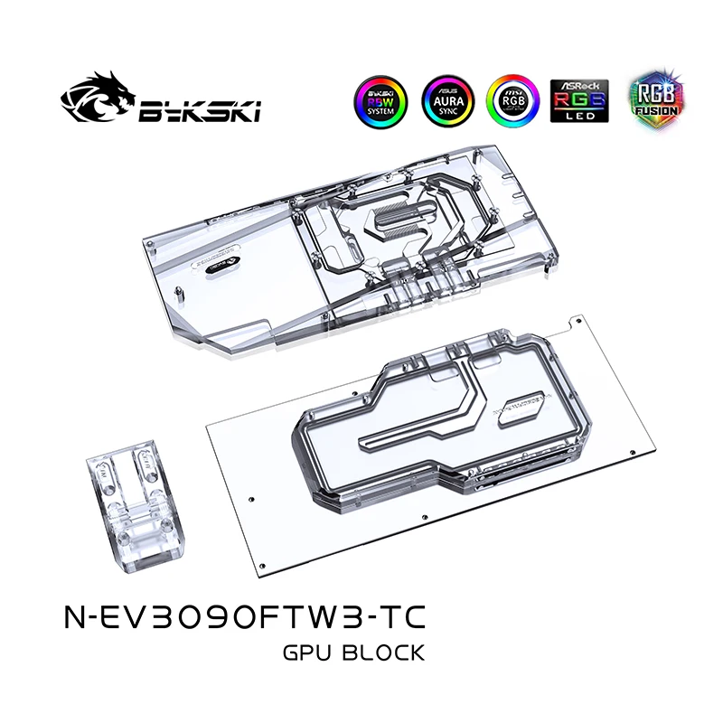 Bykski N-EV3090FTW3-TC, активный охлаждающий графический блок с задней панелью для EVGA RTX3090 3080 FTW3 ULTRA GAMING, кулер радиатора VRAM