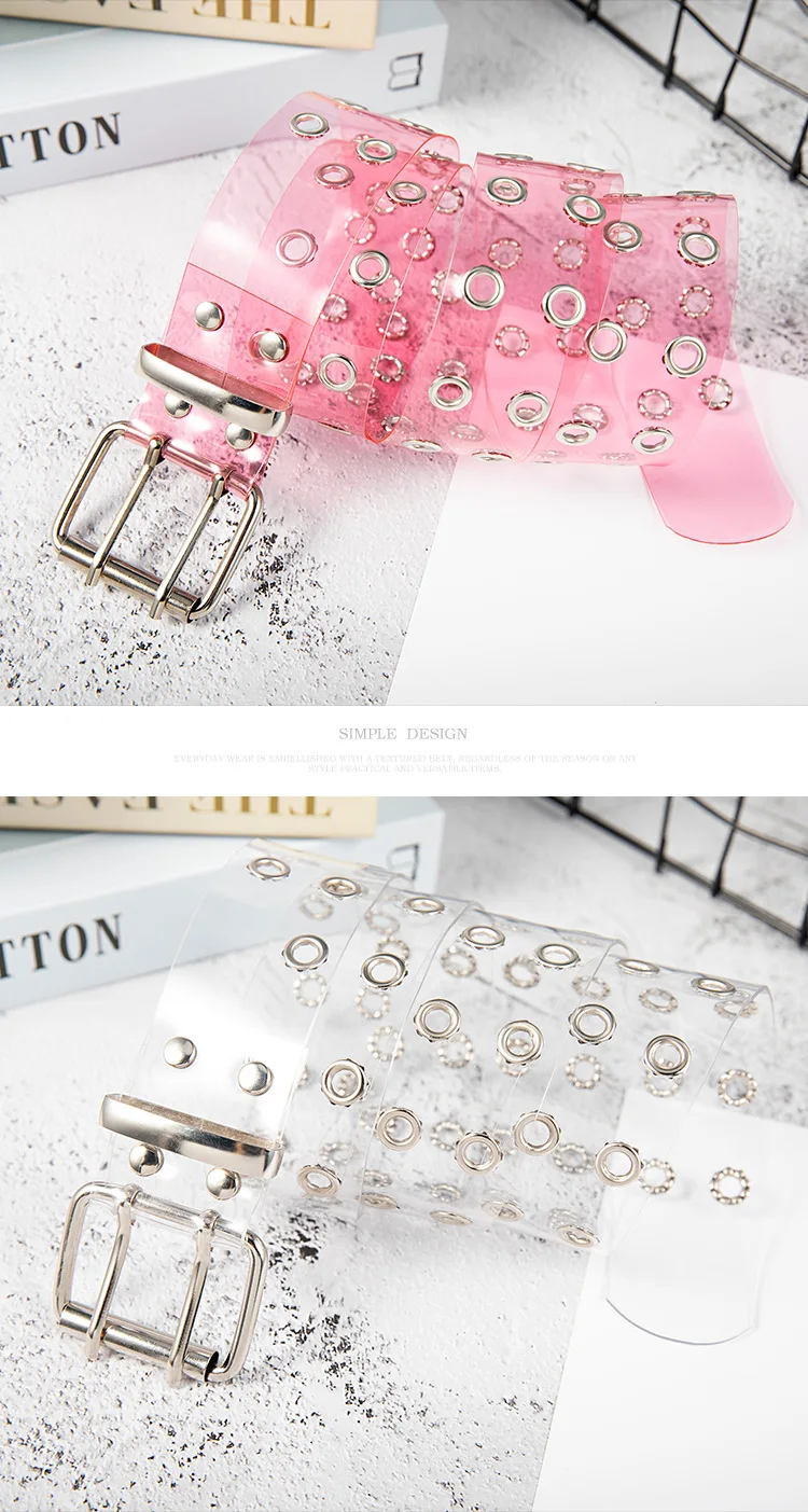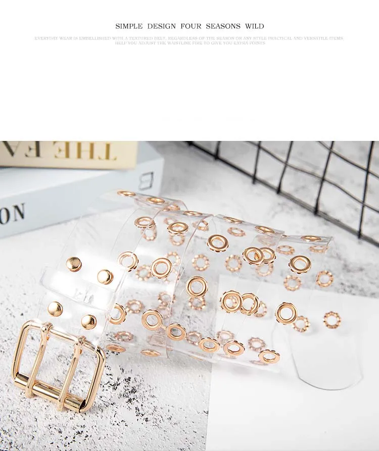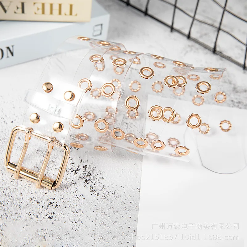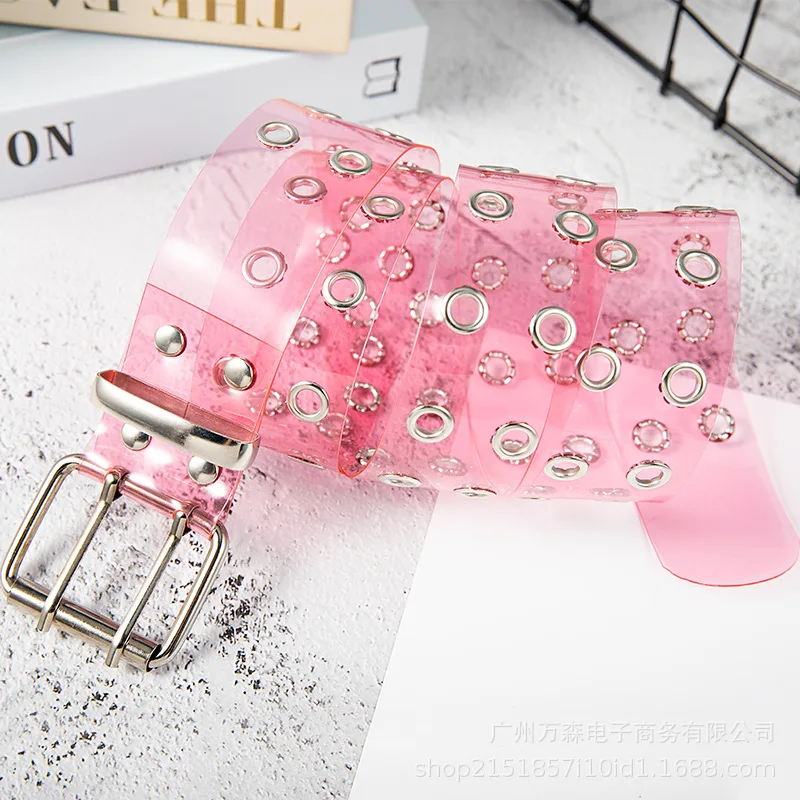 Ремень с заклепками Женский, прозрачный пояс в стиле панк, с застежкой-булавкой, из пластика, ПВХ, для джинсов и штанов, KT115