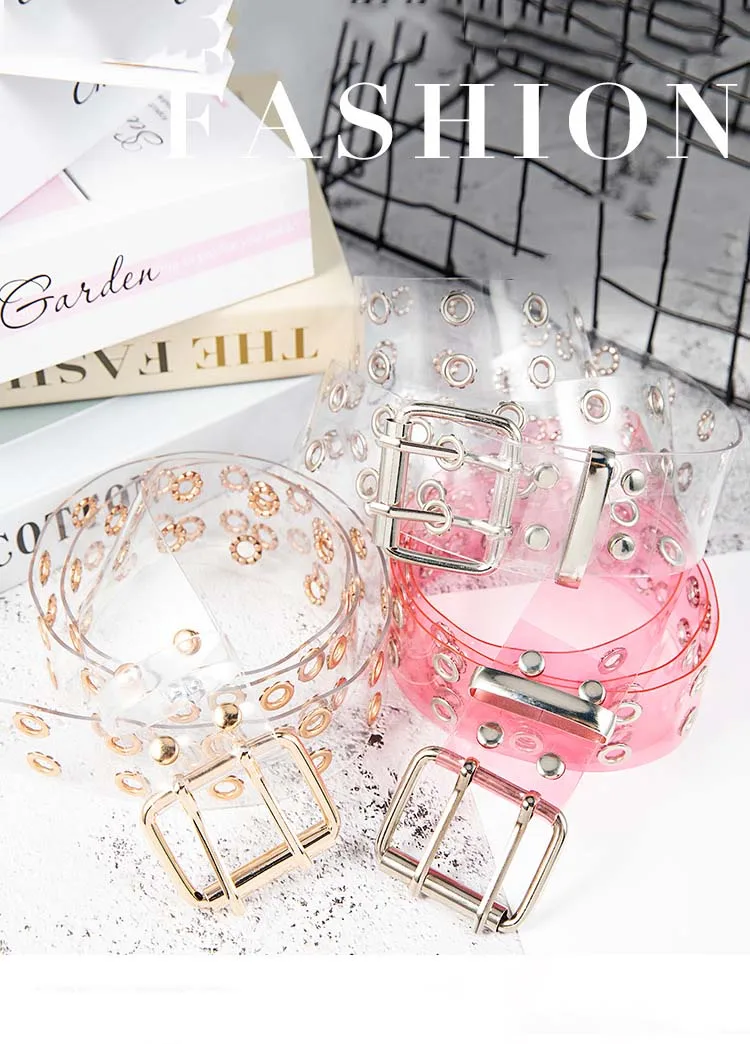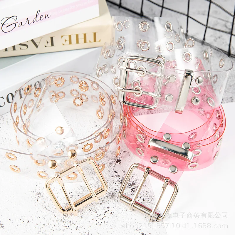 Ремень с пряжкой Женский из ПВХ, модный прозрачный белый двухрядный...