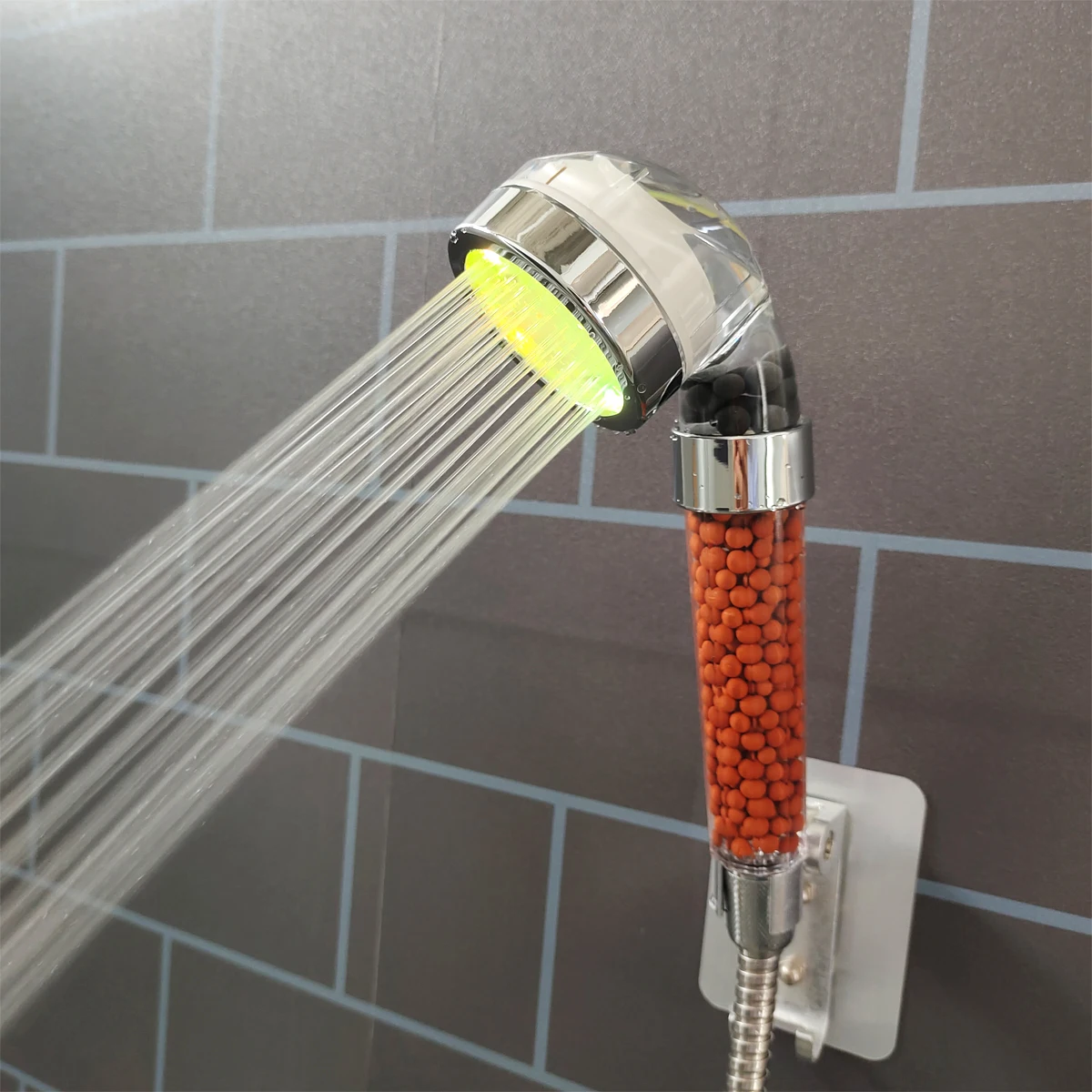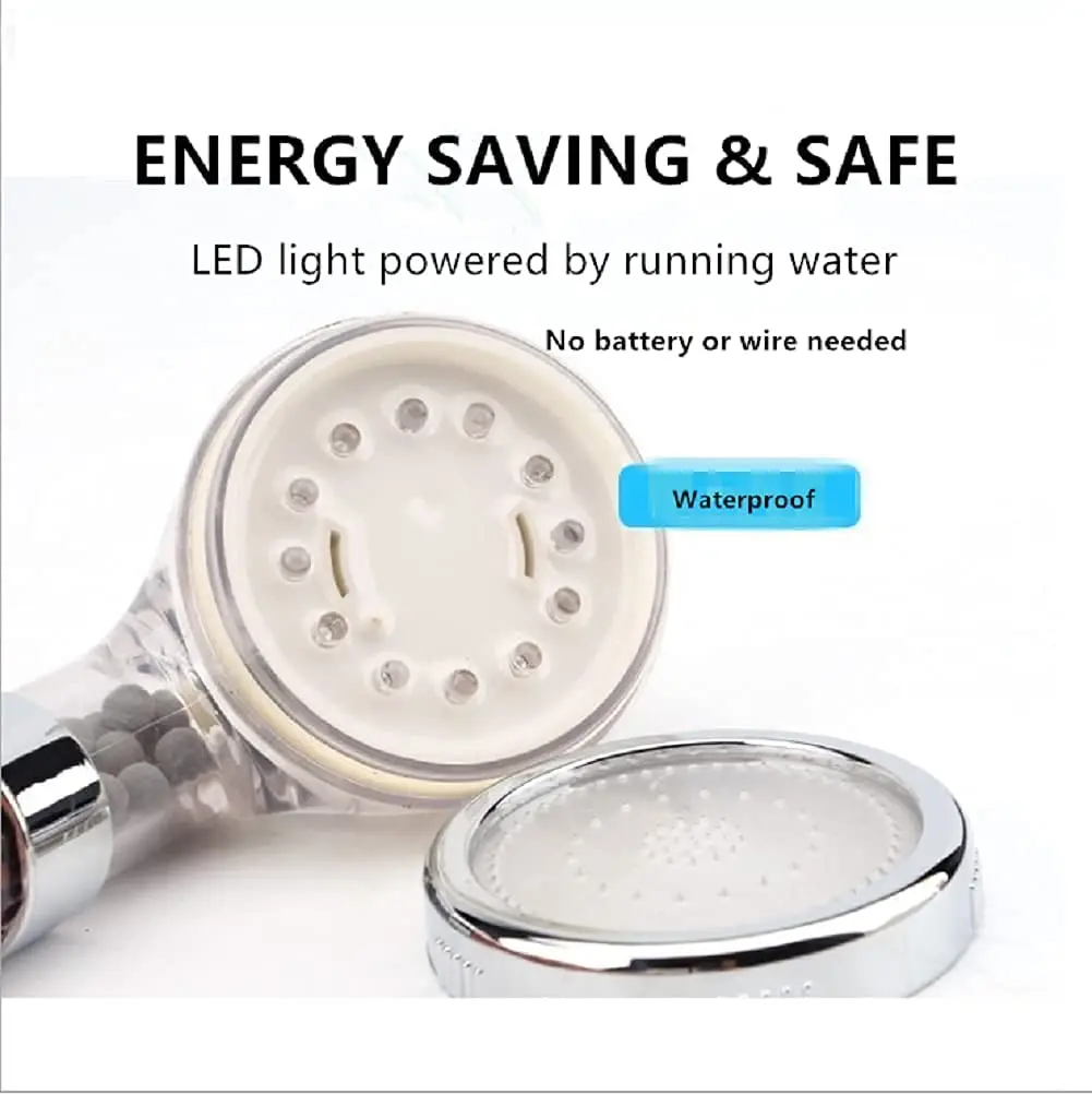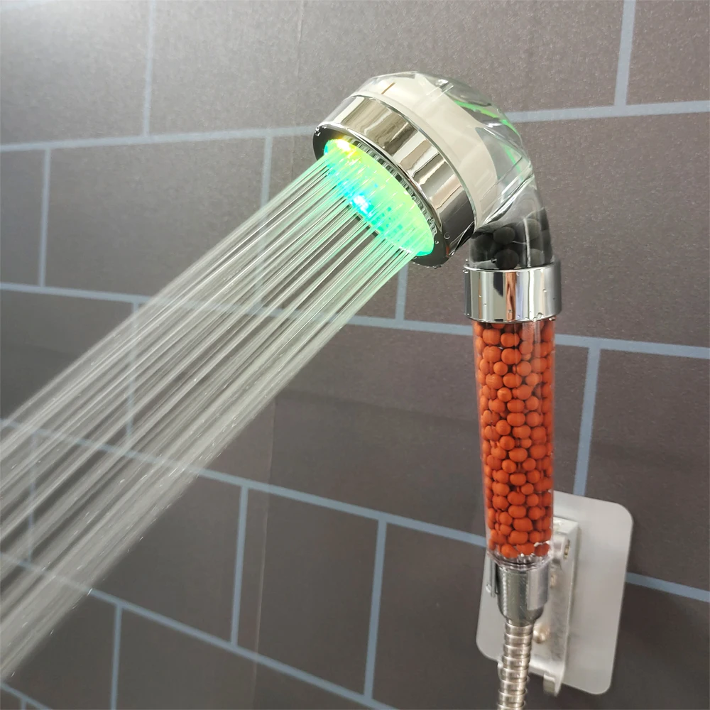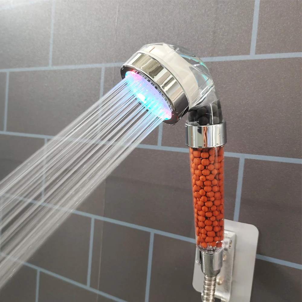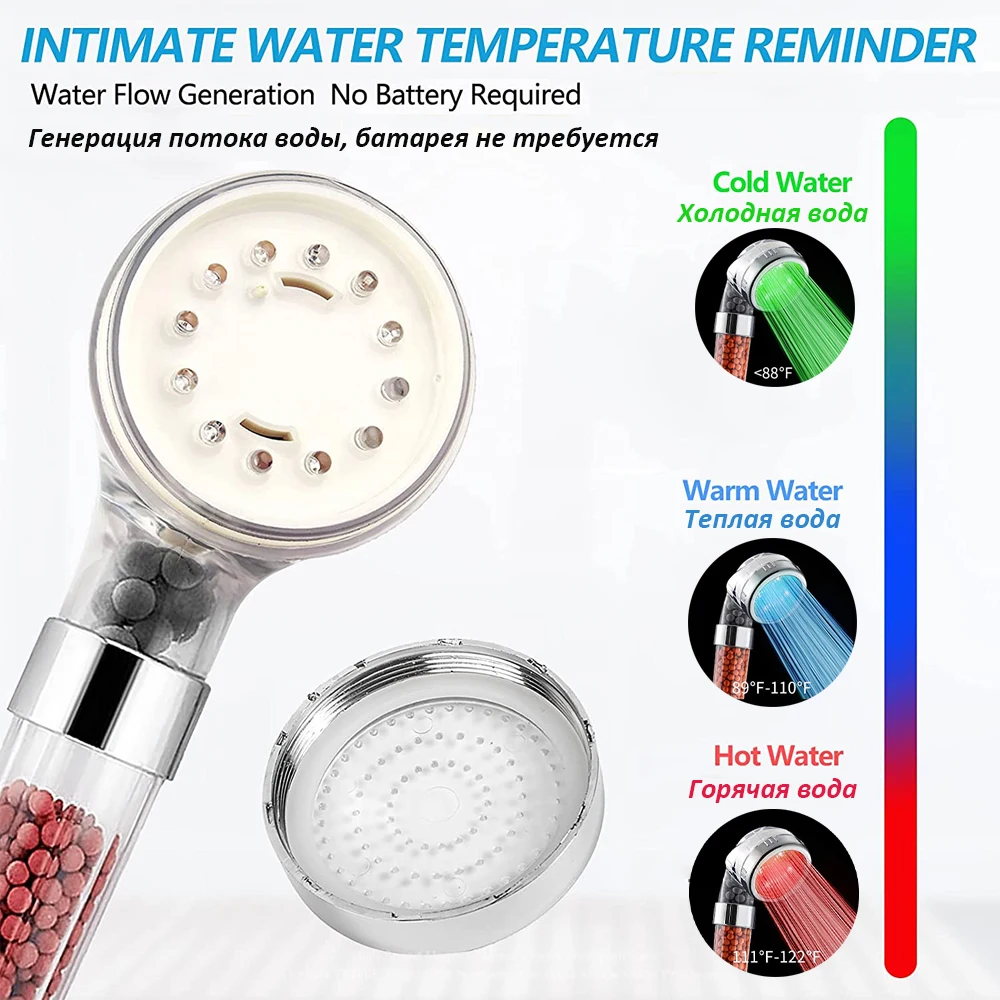 Характеристика:Минеральные шарики могут очищать воду, устранять до 99% вредного хлора и его паров, уменьшать остаточные загрязнения в воде. Улучшает сухость кожи, уменьшает секрецию масла, повышает жизнестойкость клеток, делает кожу более гладкой и Уменьшает выпадение волос.Простота установки: подходит для большинства семей.Душевые головки двух типов:Тип 1: контроль температуры душаОн может менять цвета в зависимости от температуры воды в душе. Только 3 цвета. Когда температура воды достигнет определенного диапазона. Он будет заменен на другой цвет. Зеленый цвет (температура воды <30 ℃/85 ℉), синий цвет (31 ℃-39 ℃/85 ℉-105 ℉), красный цвет (40 ℃-50 ℃/105 ℉-120 ℉)Тип 2: Автоматическая душевая головка разных цветов, без контроля температурыОн может автоматически менять несколько цветов при любой температуре воды.Общая особенность:Оба используют поток воды для получения электричества, без батареи