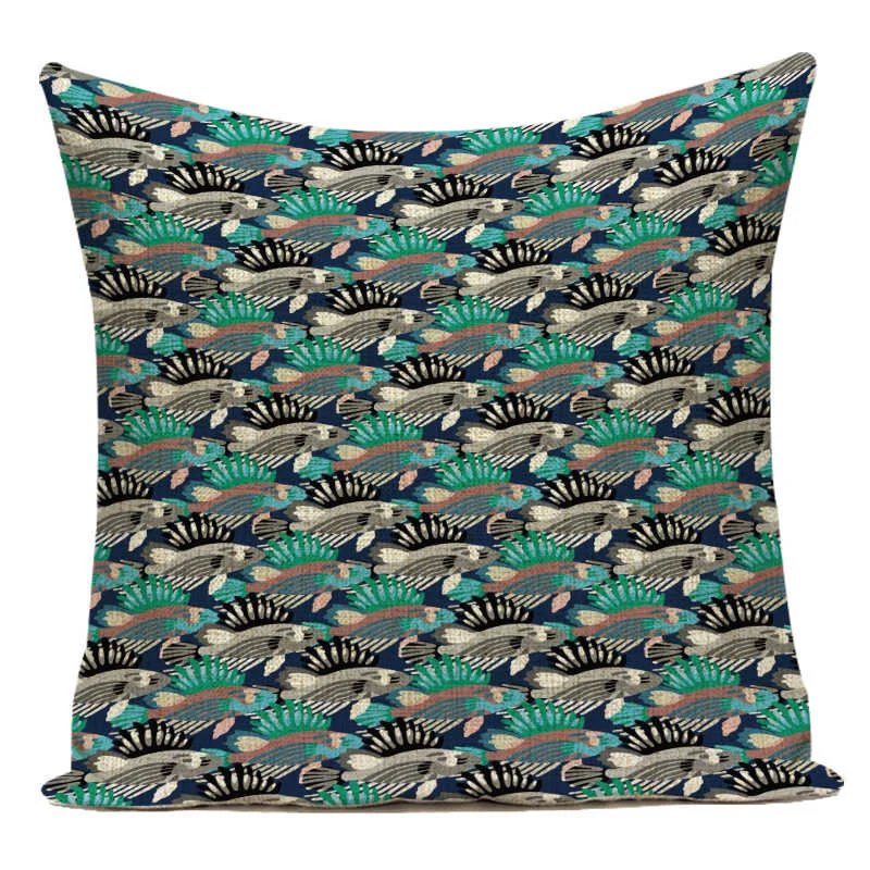 Мультяшный чехол для подушки с морской жизнью, скандинавский чехол ...