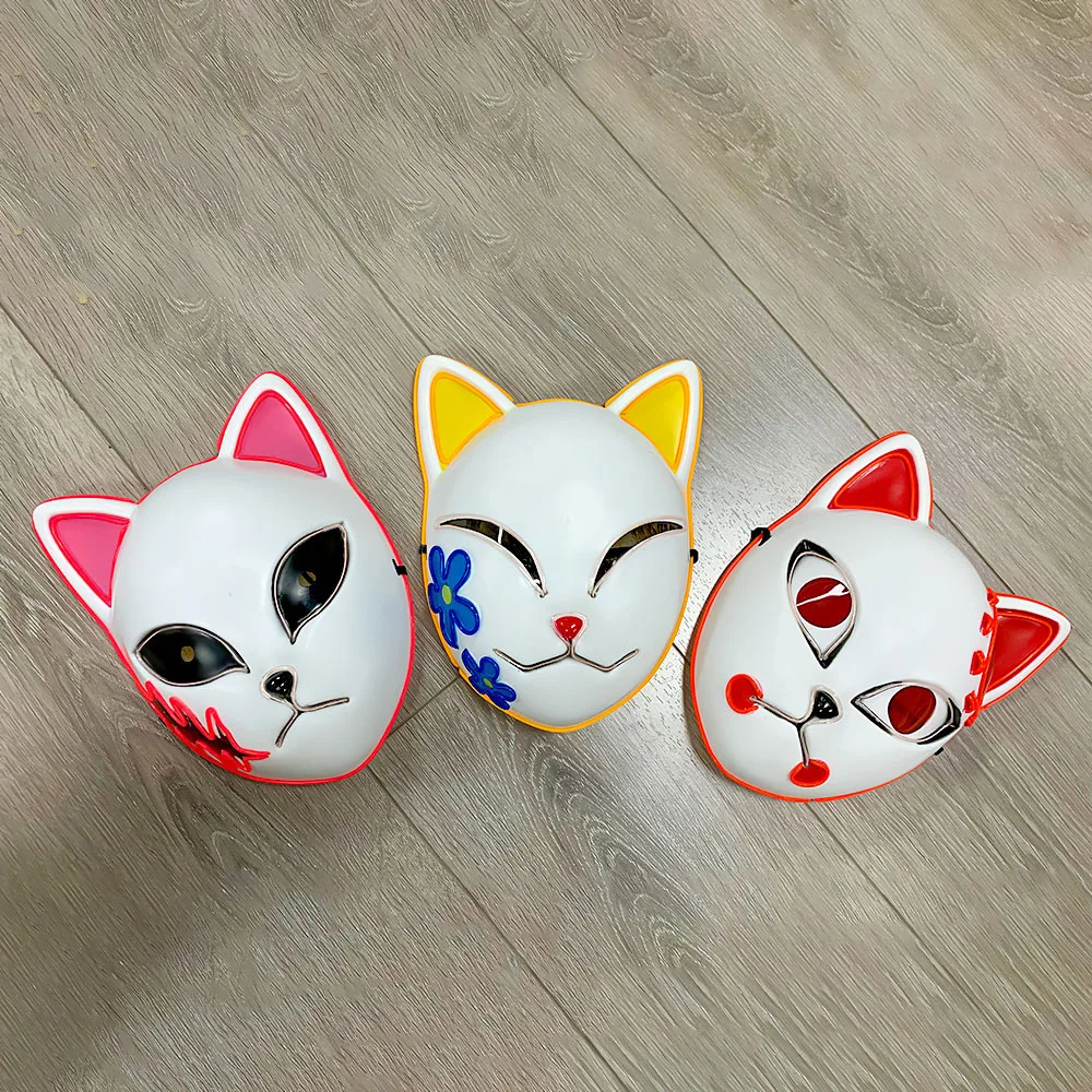 Новая маска для косплея демонов Tanjirou Sabito Makomo, пластиковая светодиодсветильник светящаяся маска для Хэллоуина, головной убор Hannya Tengu
