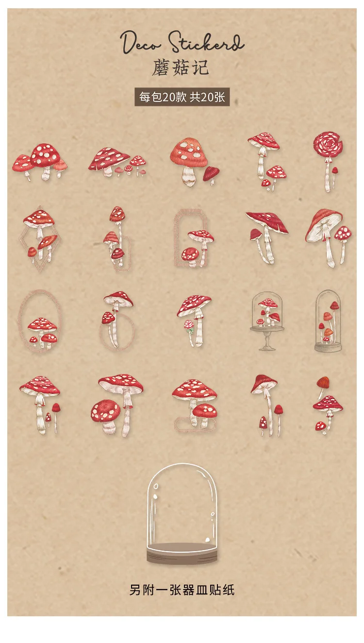 20 шт.упак. Винтаж Клей украшения Стикеры комплект наклейки в форме Грибов Стикеры s поделки этикетки для журнала Скрапбукинг альбом, ежедневник дневник