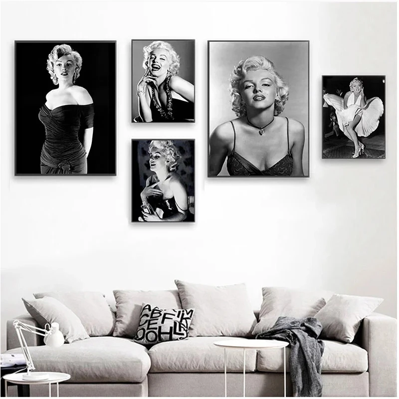 Классические картины Мэрилин Монро на холсте, черные и белые фигурки, плакаты и принты, настенные картины для гостиной, украшение для дома