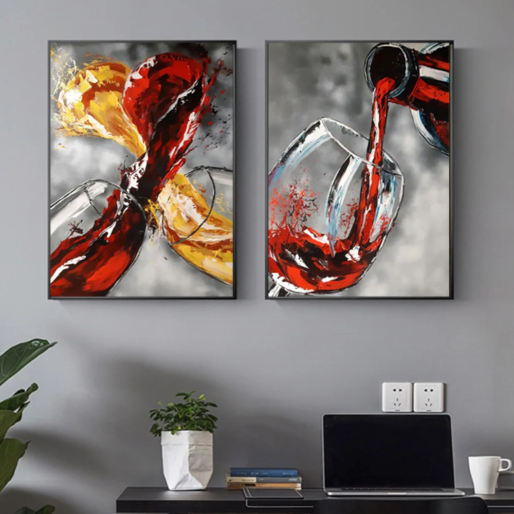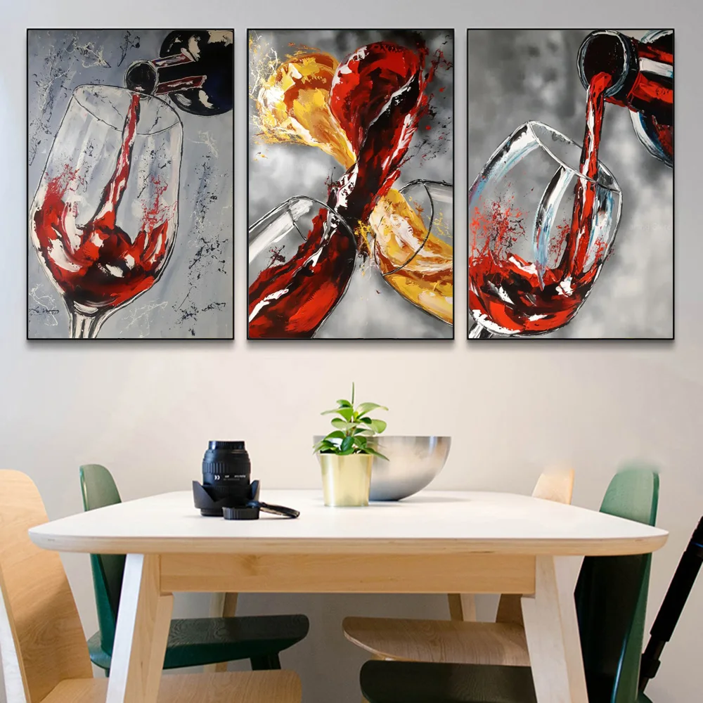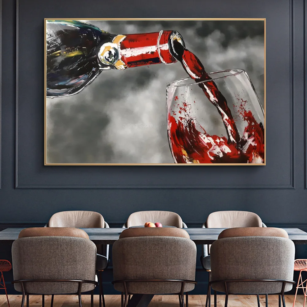 Картина маслом с изображением красного вина на стеклянном холсте, виски, в стиле ретро, настенные абстрактные картины, плакат для украшения бара