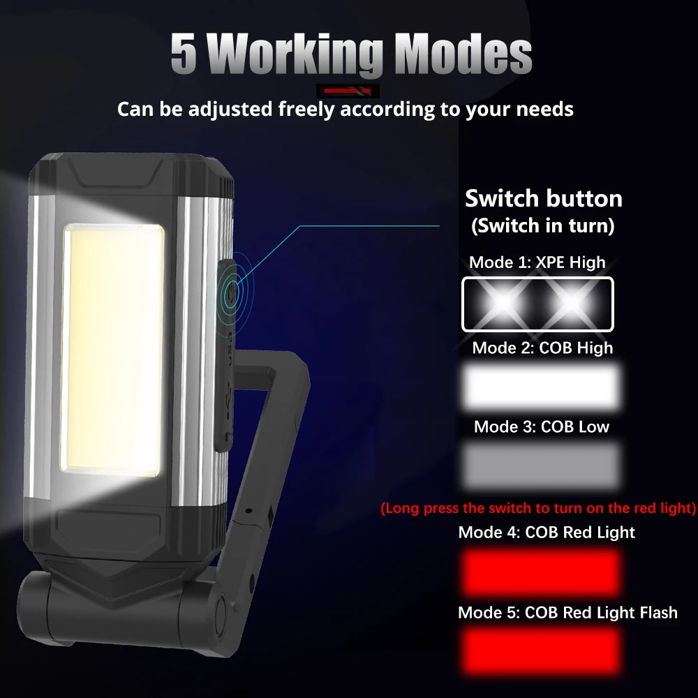 Рабочий суперъяркий светодиодный переносной светсветильник с COB матрицей, перезаряжаемый от USB, для кемпинга, задний Магнитный Водонепроницаемый Регулируемый Фонарь