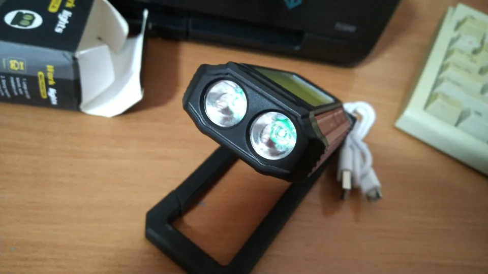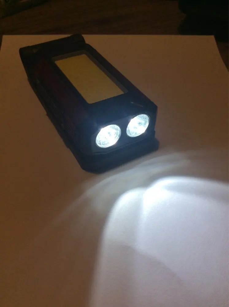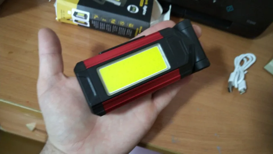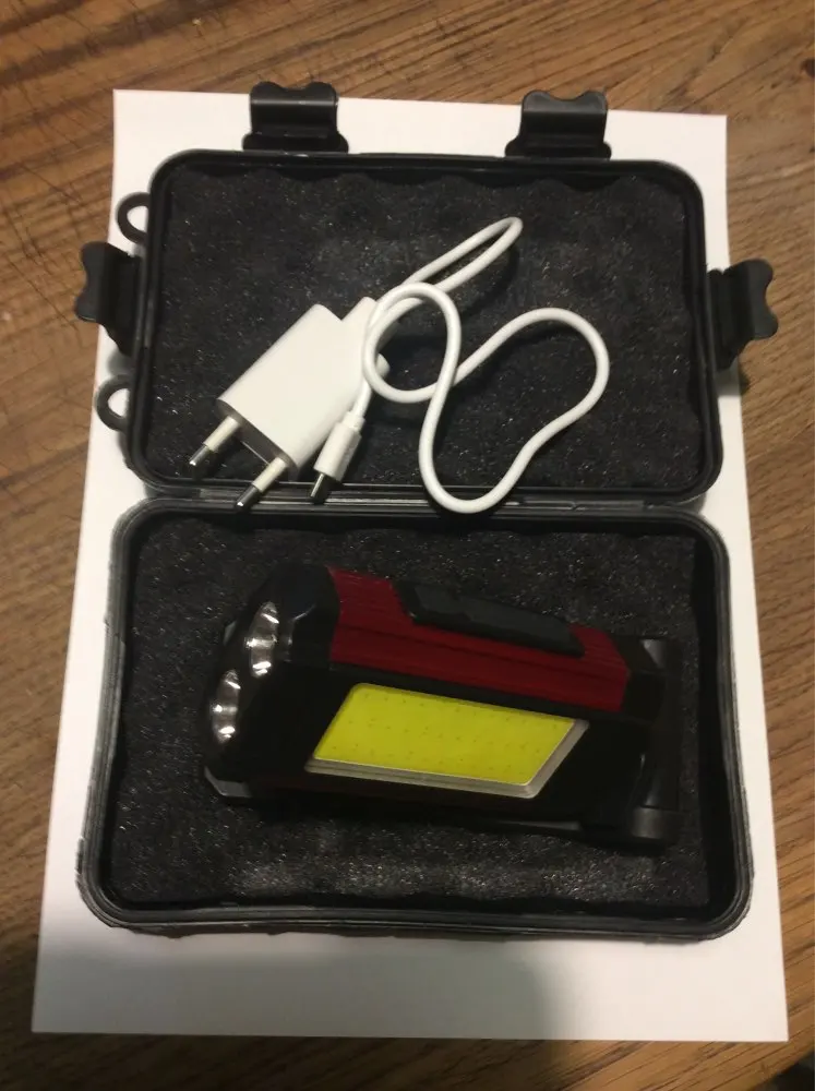 фонарь хороший, соответствует описанию, светит ярко, обычный светит долго, cob часа два светит, на кнопке индикатор заряда батареи (зеленый, красный) при включенном cob долгое нажатие кнопки включает красный свет, при дальнейшем коротком нажатии, красный мигающий. очень удобная подставка с магнит а минздраву. товар и продавца рекомендую. товар отправлен в день заказа шло месяц