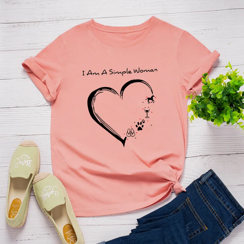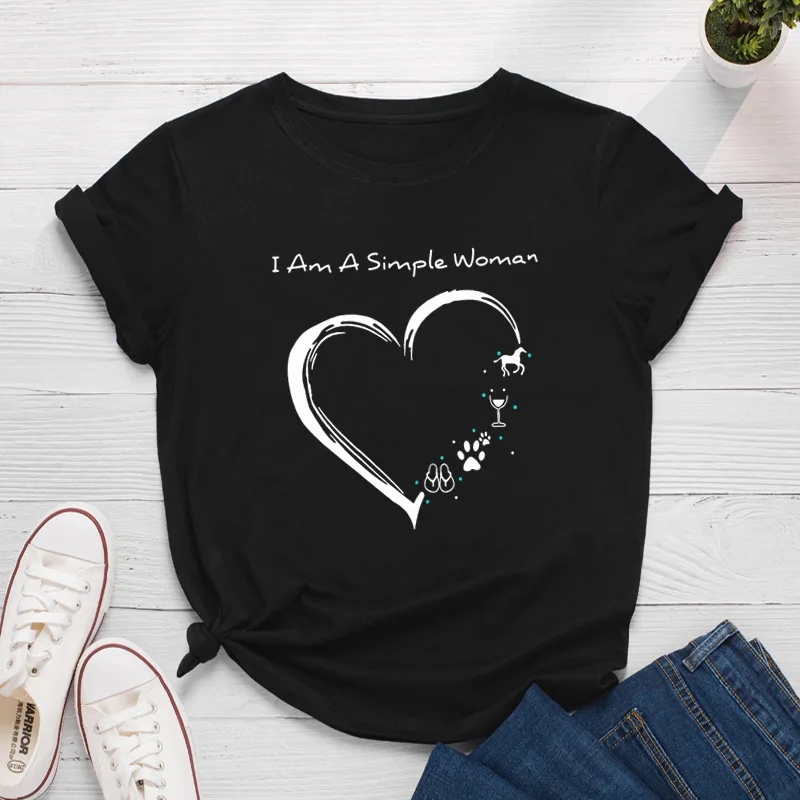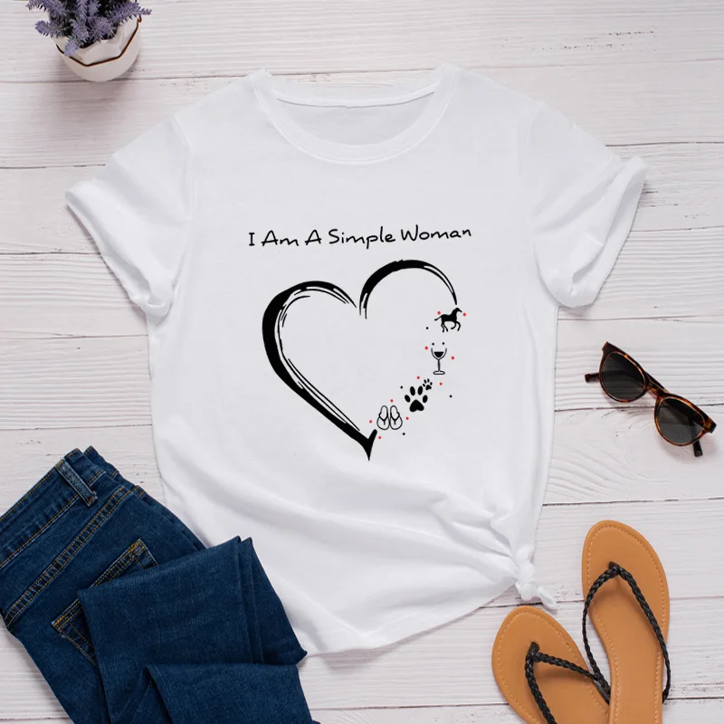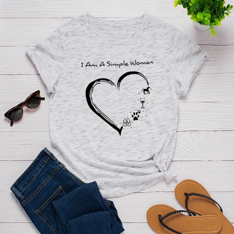 100% Хлопковая женская рубашка размера плюс, модная футболка с принтом сердца и надписями футболки для женщин с О-образным вырезом с коротким рукавом футболки женские футболки Топ