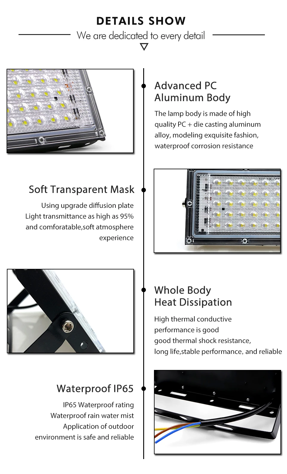 Факты:Наш продукт изготовлен с высококачественными чипами. Высокое качество ABS абажурВысокий коэффициент пропускания. Наш светодиодный светильник эквивалентен 300 ВтГалогенная лампа. Прожектор также экономит 80% вашей энергии по сравнению сК традиционным галогенным лампам.