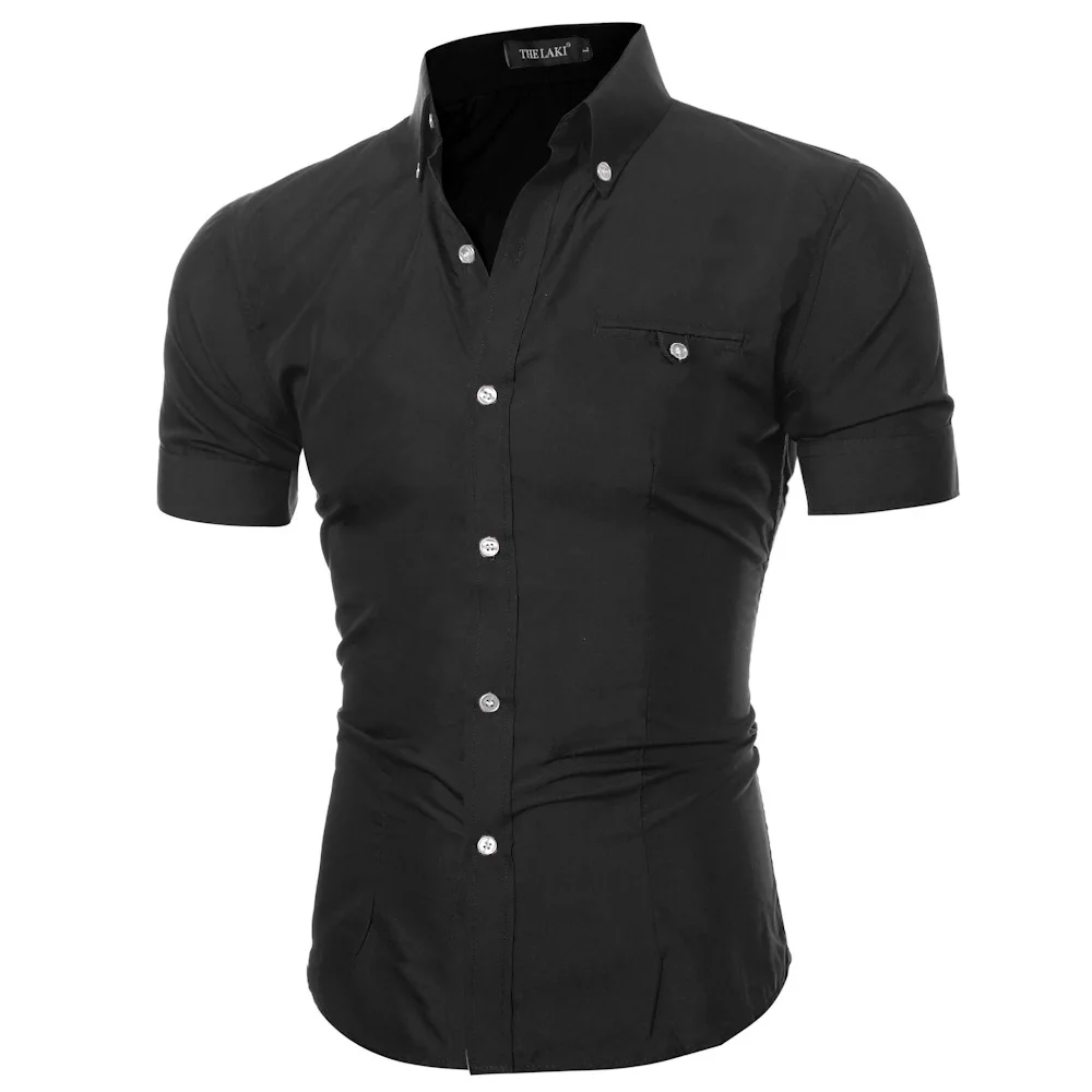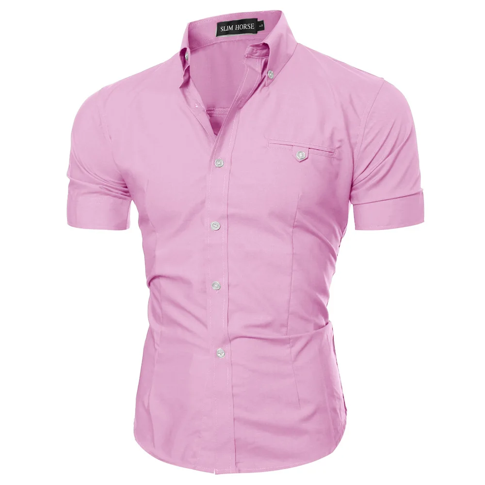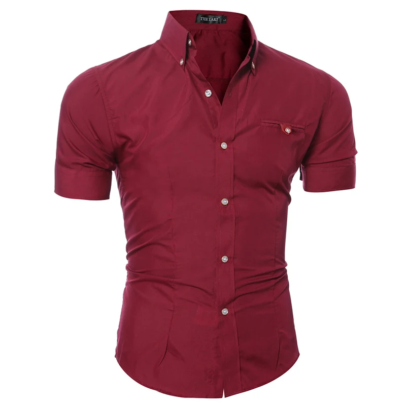 Мужская однотонная приталенная рубашка, Повседневная деловая рубашка с коротким рукавом и воротником-стойкой, лето 2021