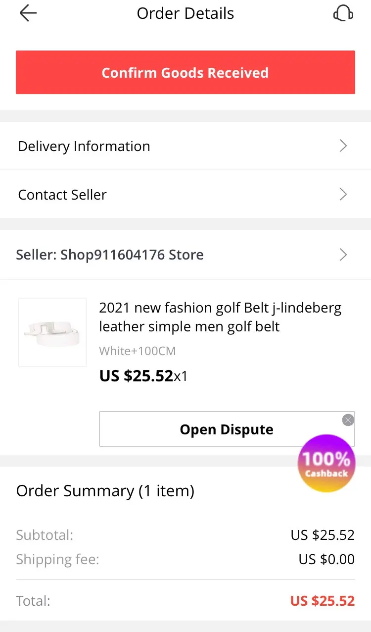 Доставлен неправильный размер ремня. Я заказал 100 см, но продавец отправил 110 см. И я связался с продавцом, чтобы отменить заказ, но продавец уведомил меня о том, что порезали ремень, чтобы уменьшить размер. Конечно, я отказался от предложения продавца.