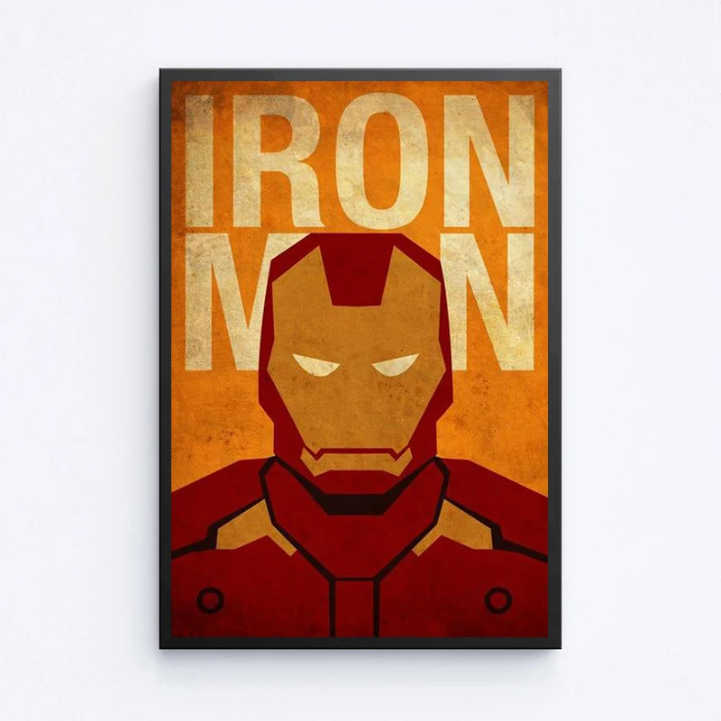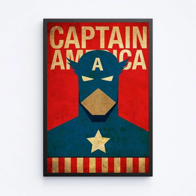 Картина на холсте с супергероями Марвел, минималистская винтажная картина с принтом Капитан Америка, Железный человек, Настенная картина, домашний декор
