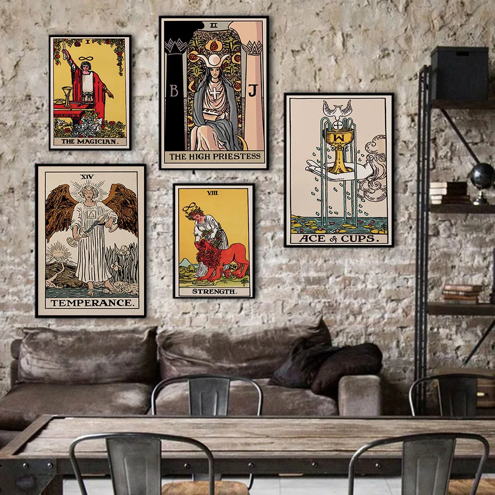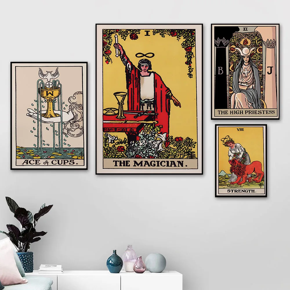 Плакат Таро с изображением силы температуры, настенные картины, живопись, Волшебная жрица, абстрактные принты, декор для гостиной и дома